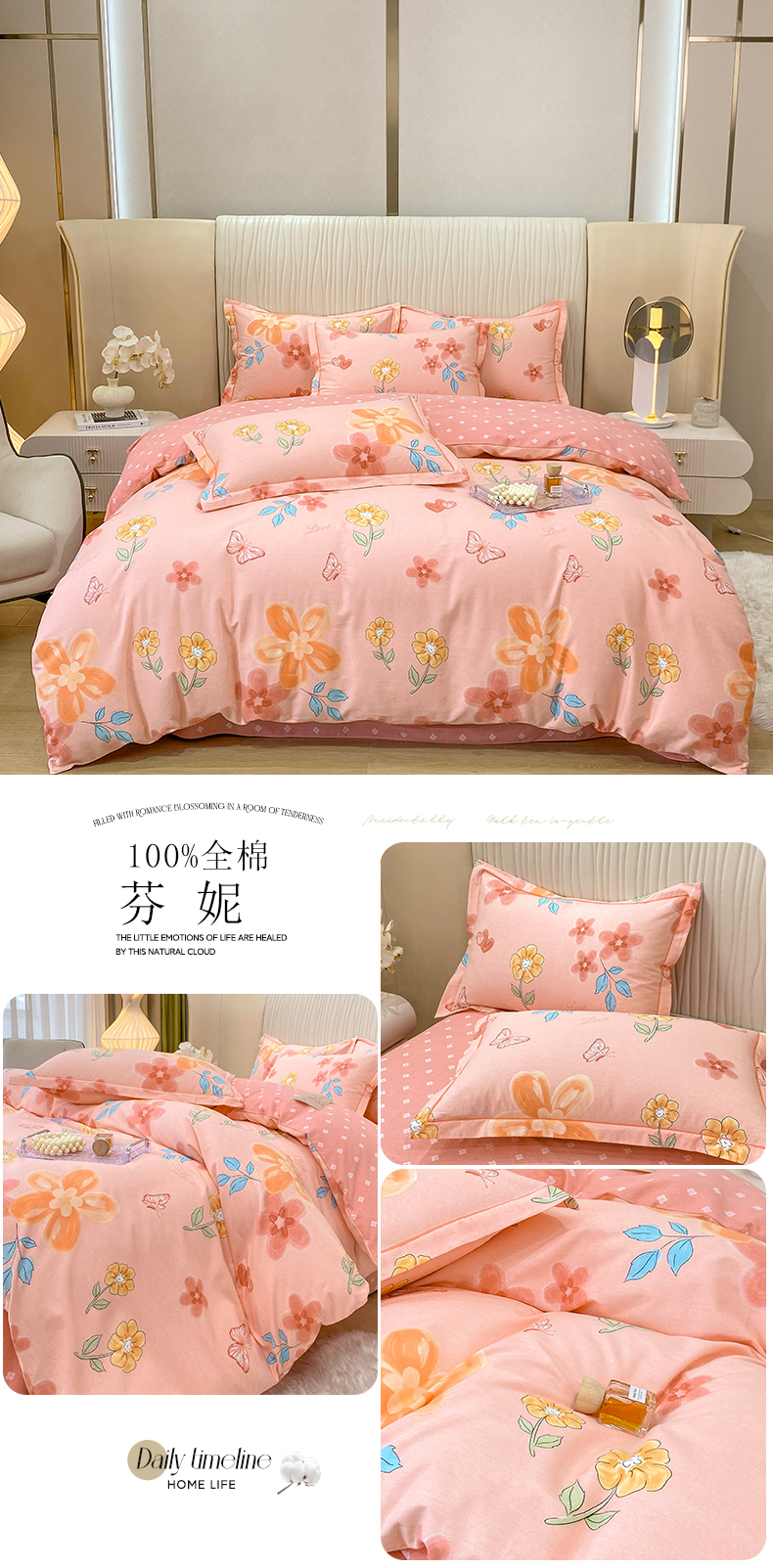 红日子纺织品 2025新款100%全棉纯棉磨毛四件套 芬妮