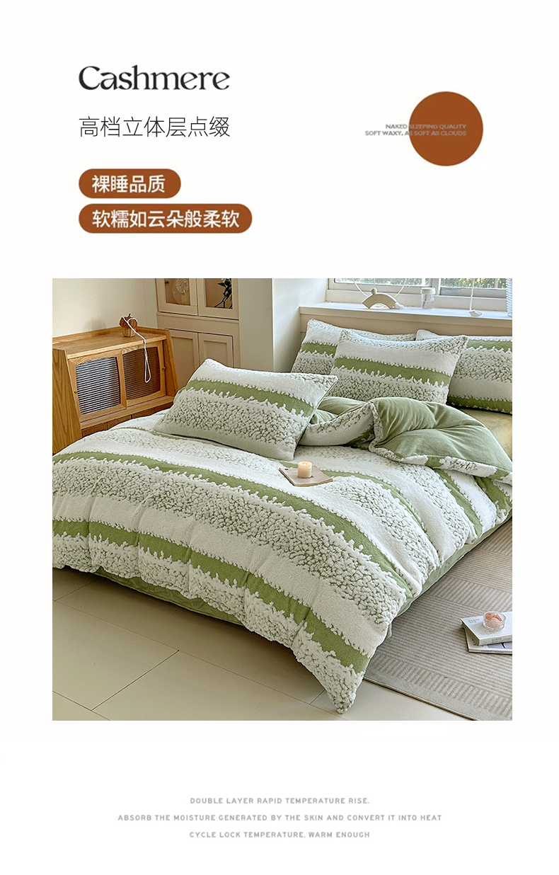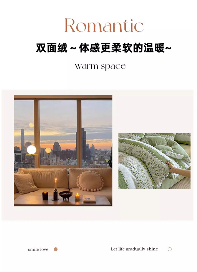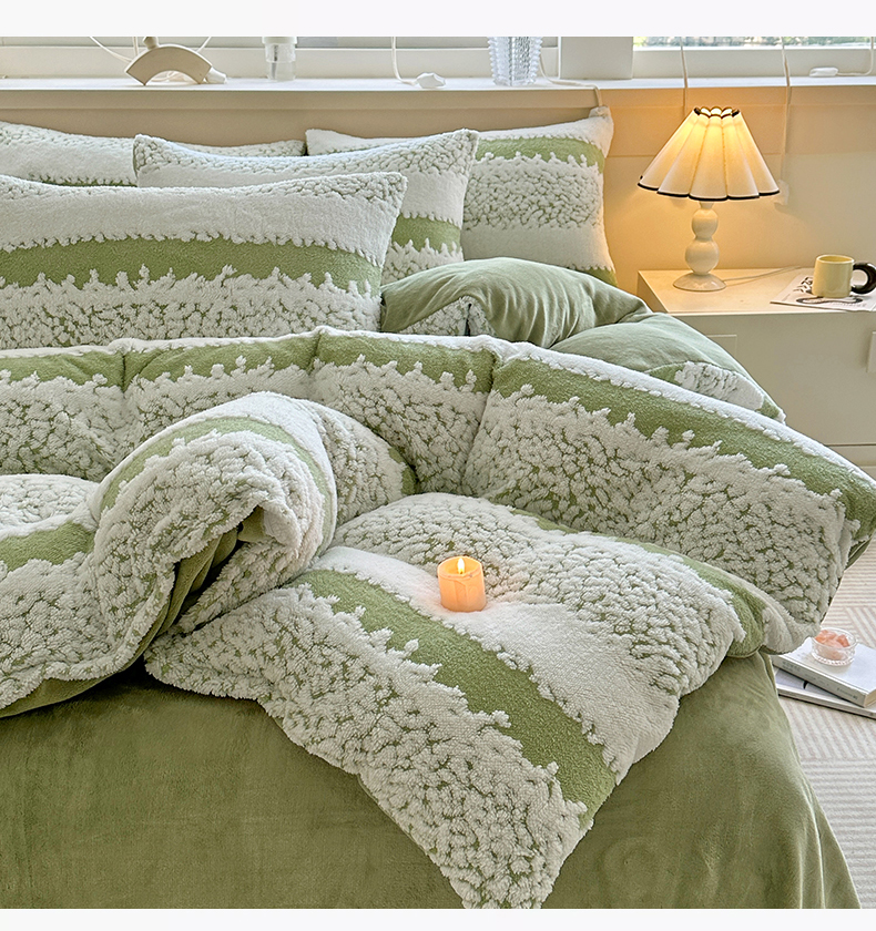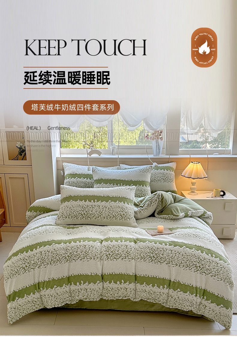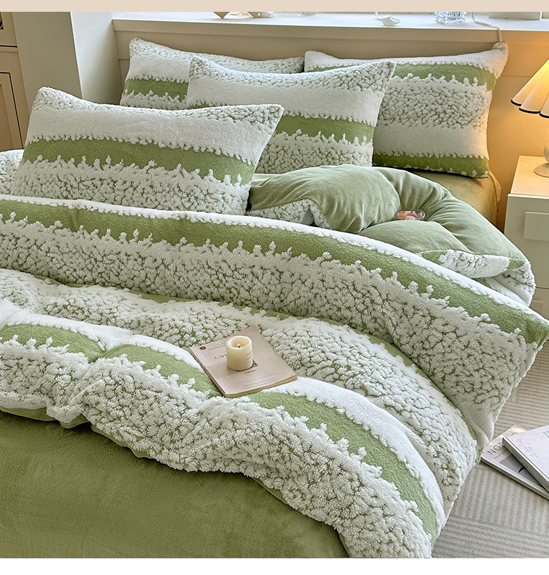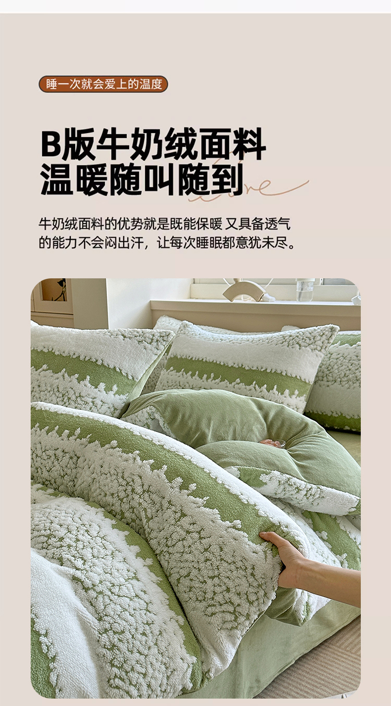 当前位置: 91家纺网 > 商品网购 > 床品套件 > 四件套 > 其它四件套 > 家贝爱 2025秋冬新款高克重塔芙绒提花四件套 扶摇-绿