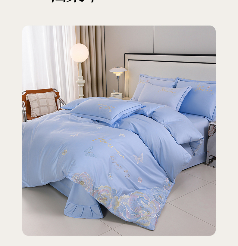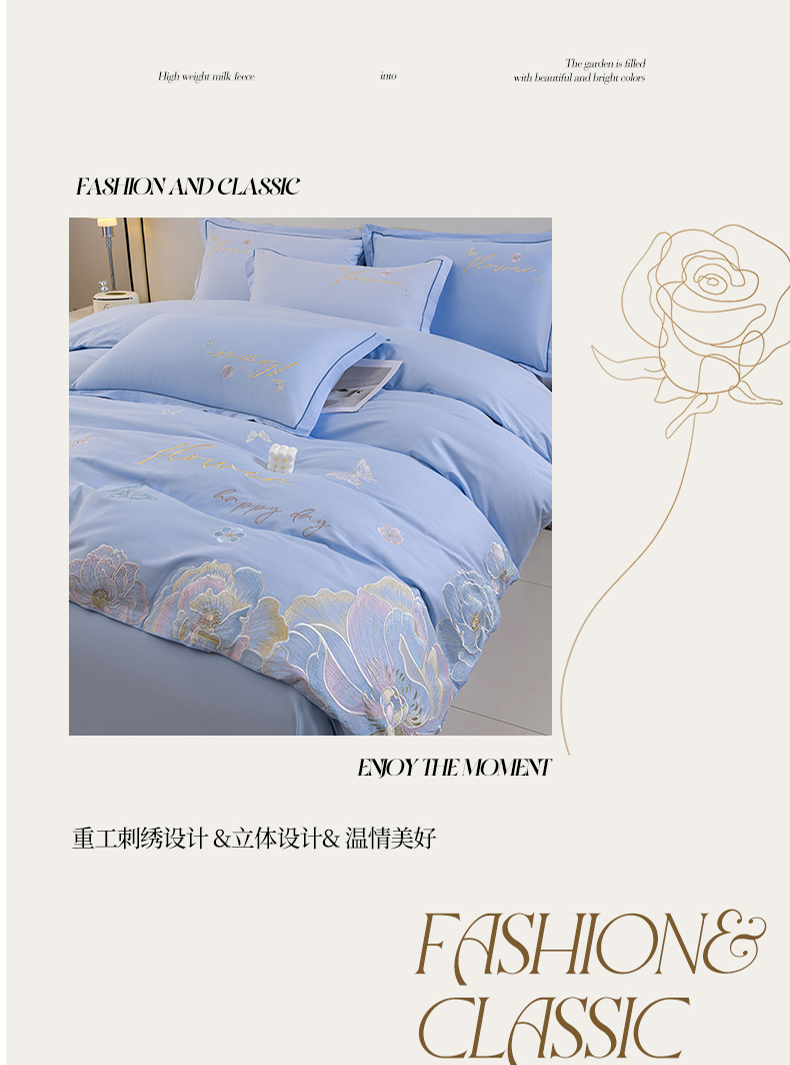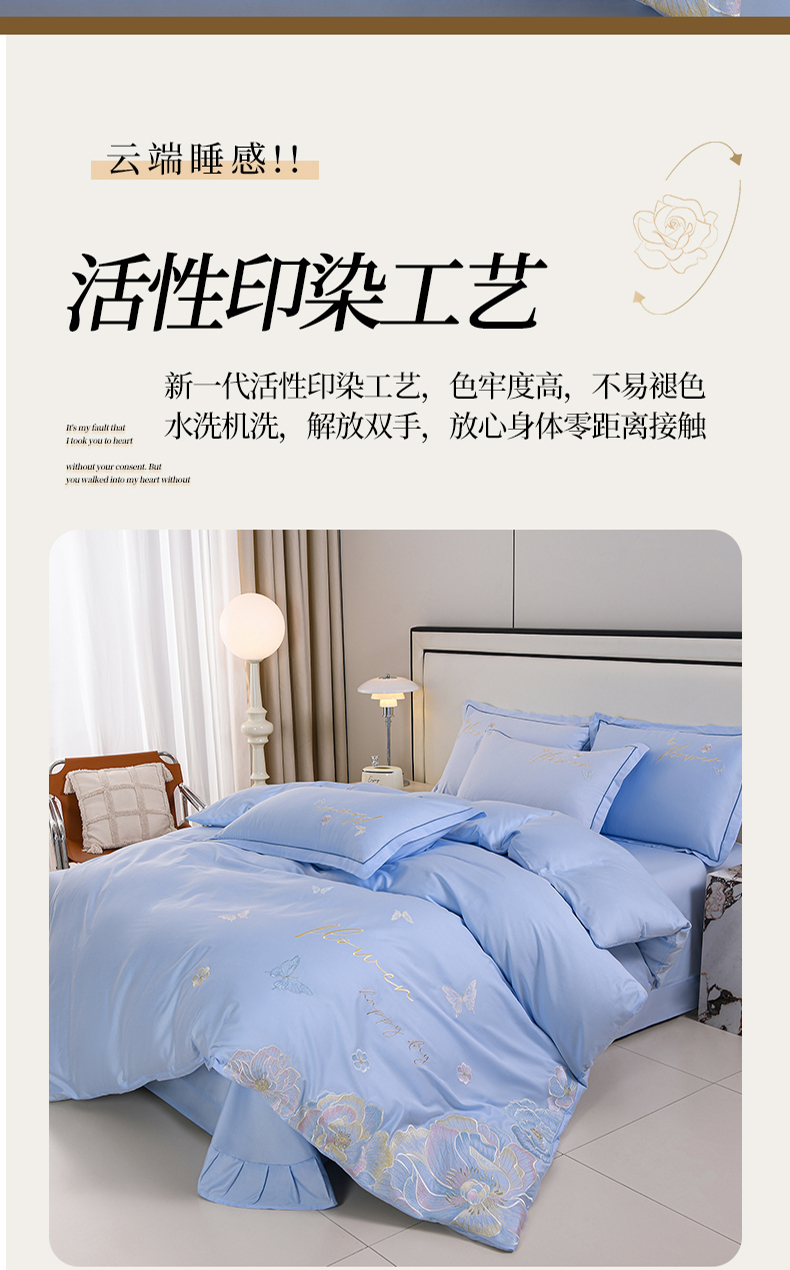 绒小宣 2025新款13372全棉绣花四件套-牡丹佳人 华尔兹-蓝