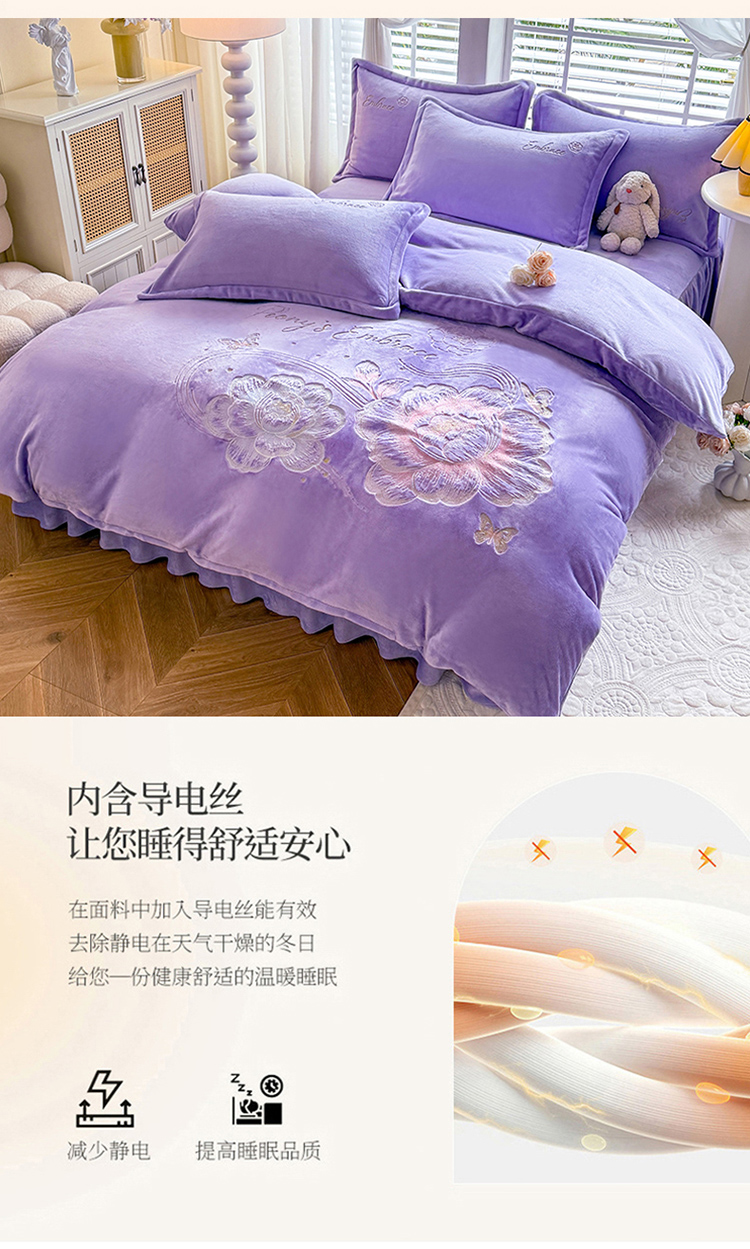 漫布云2025秋冬新款11斤230g全消光牛奶绒夹棉床盖款四件套纯色蕾丝花边刺绣床裙款床盖,蝶恋花-梦幻紫, 蝶恋花-嫩黄, 蝶恋花-新芽绿 ,蝶恋花-婴儿蓝 ,蝶恋花-樱花粉