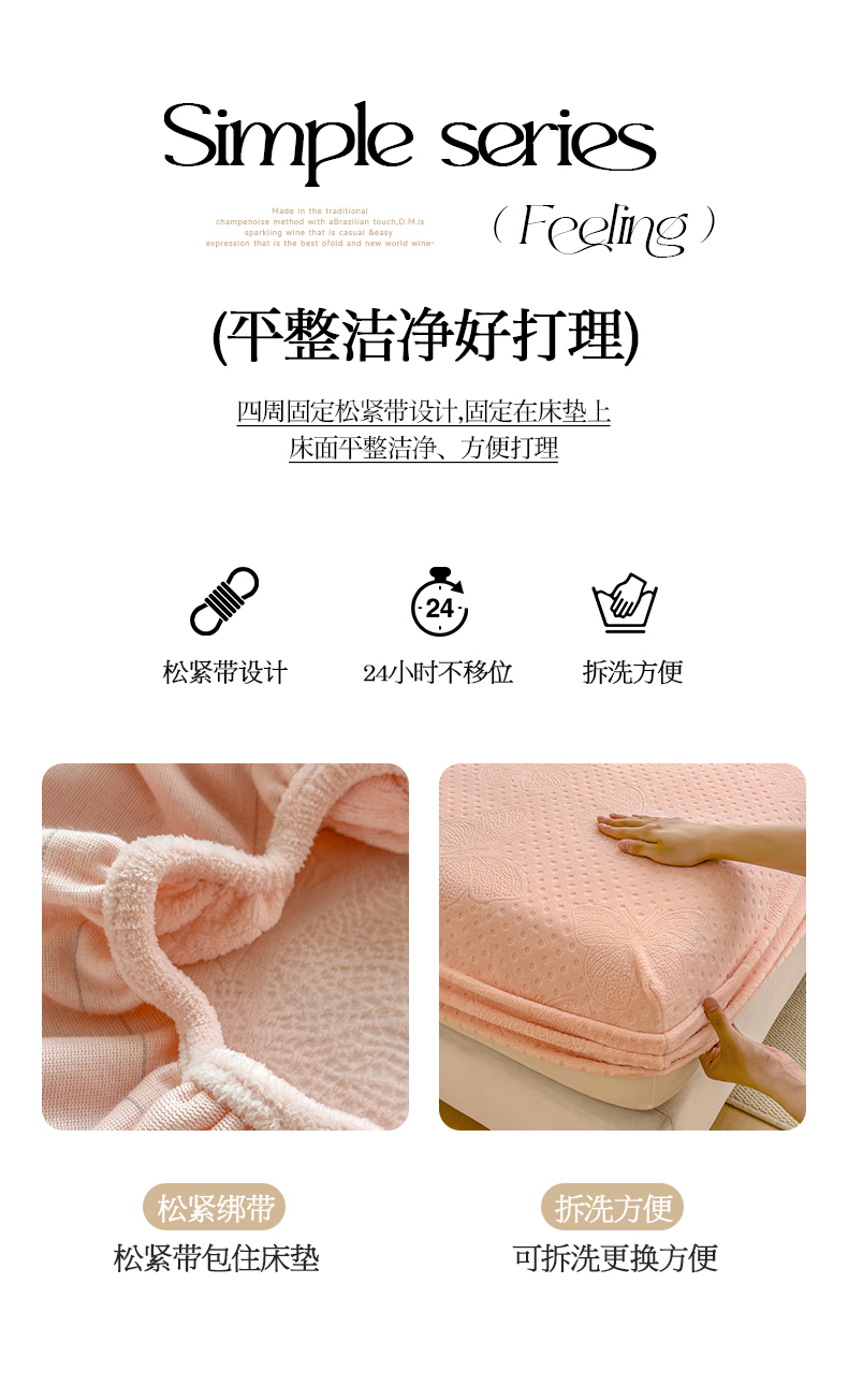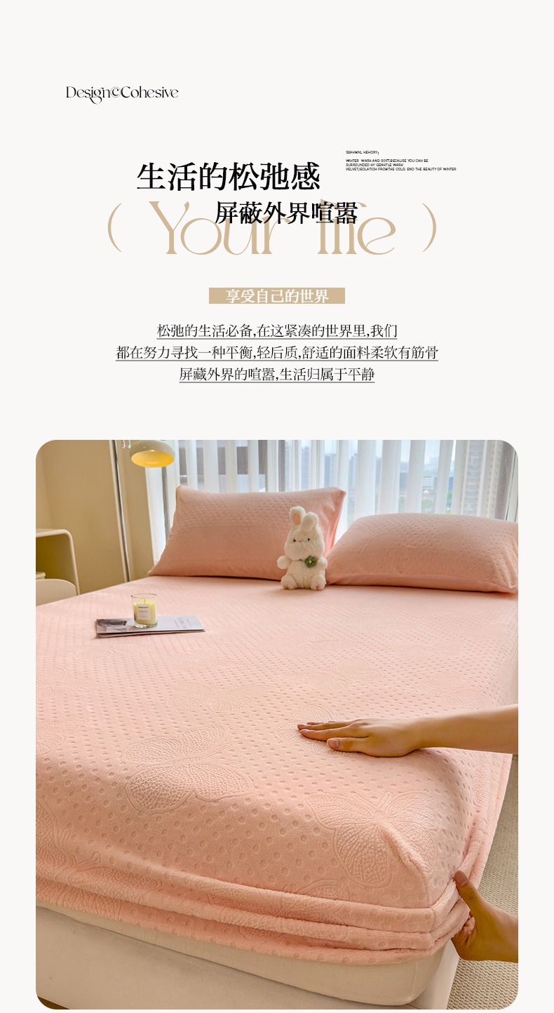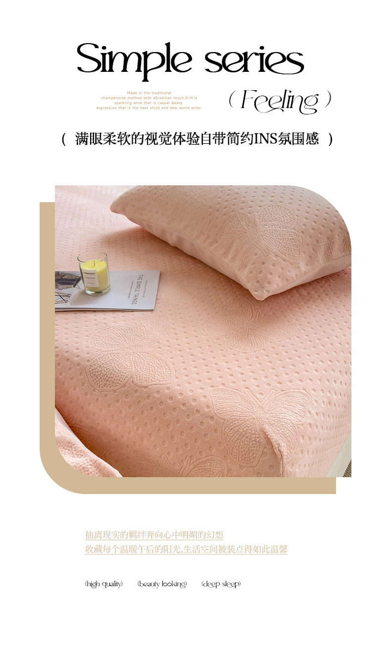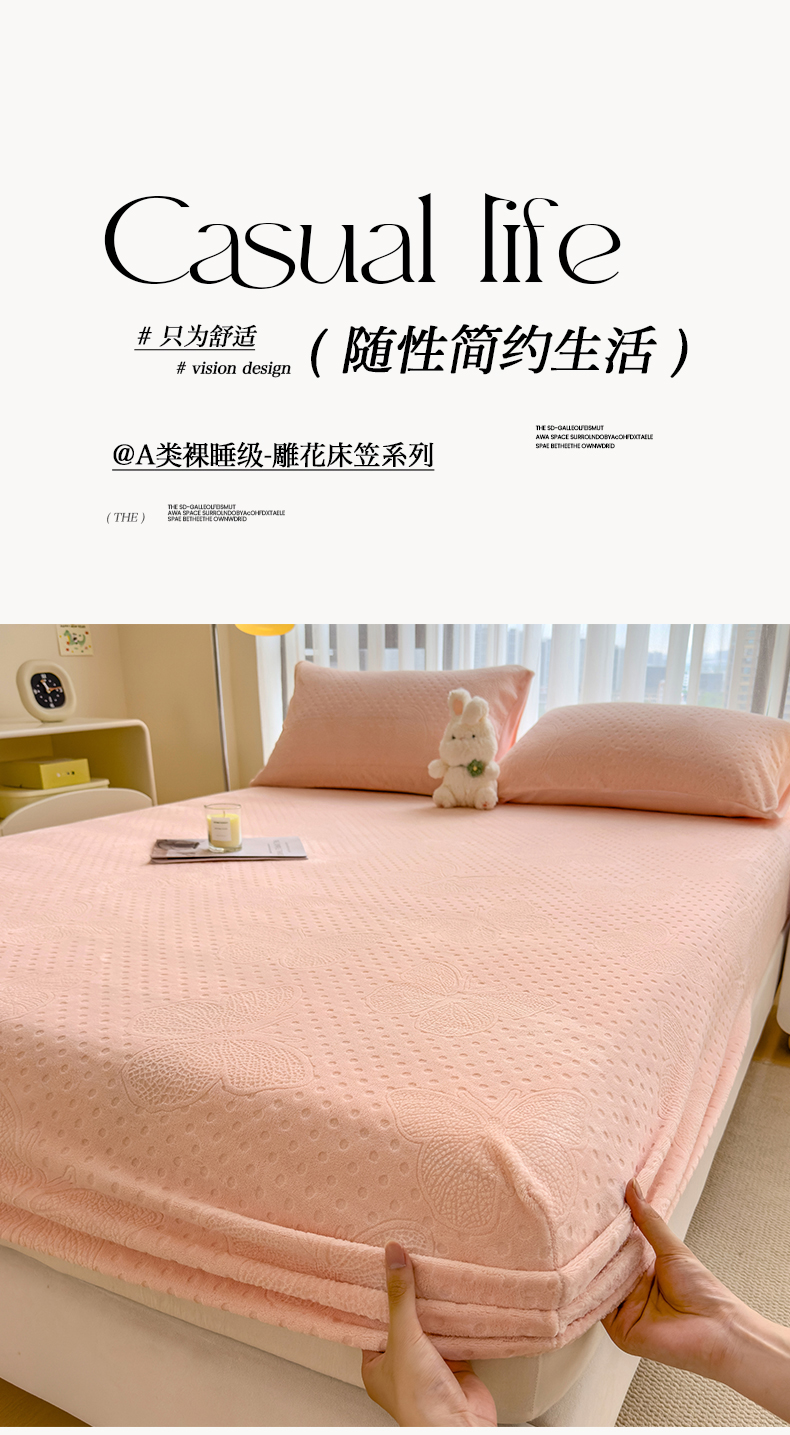 当前位置: 91家纺网 > 商品网购 > 床品套件 > 四件套 > 牛奶绒四件套 > 摩妮卡 2025新款小清新雕花牛奶绒床笠单床笠床笠三件套 简爱粉