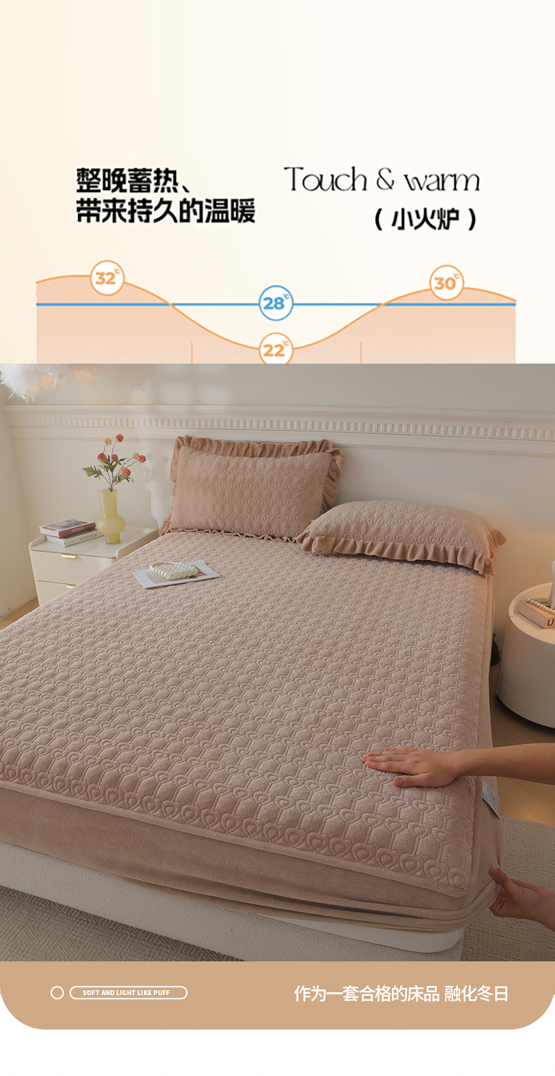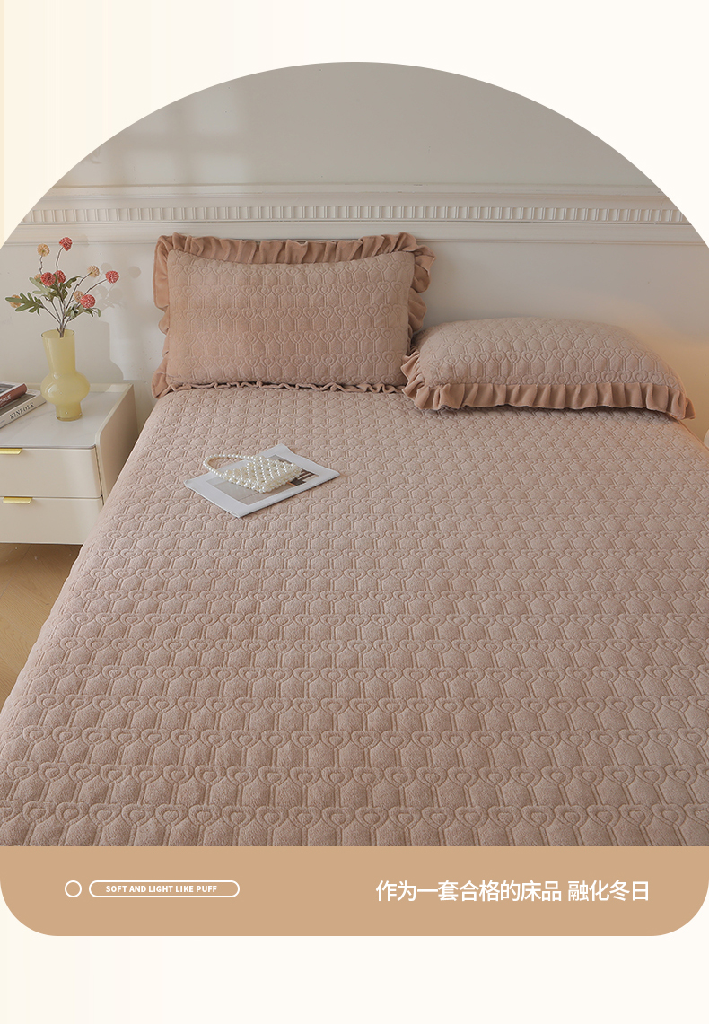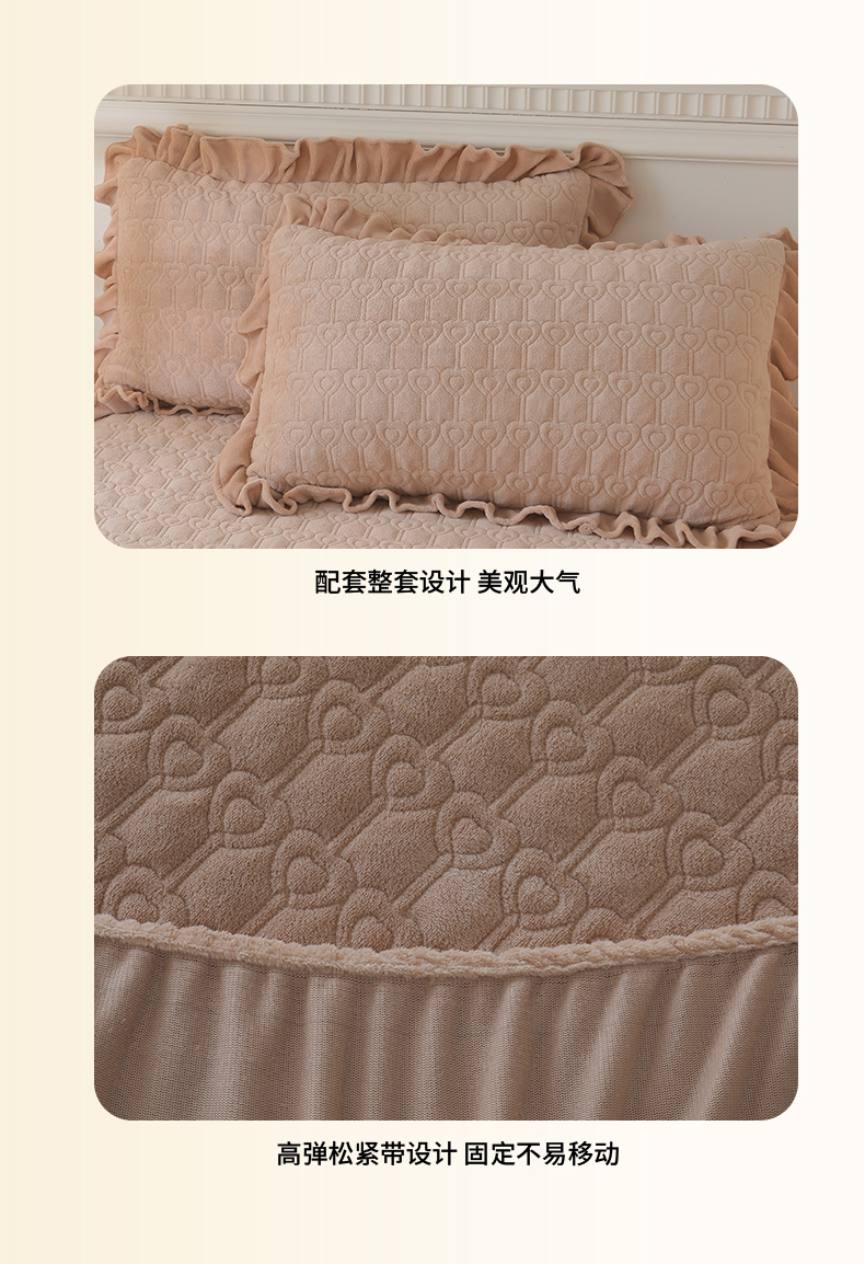 (总)怡源梦 2025新款A类牛奶绒夹棉床笠三件套-甜心公主系列,灰色,咖色,大红色,粉玉色,绿色,米白色,紫色