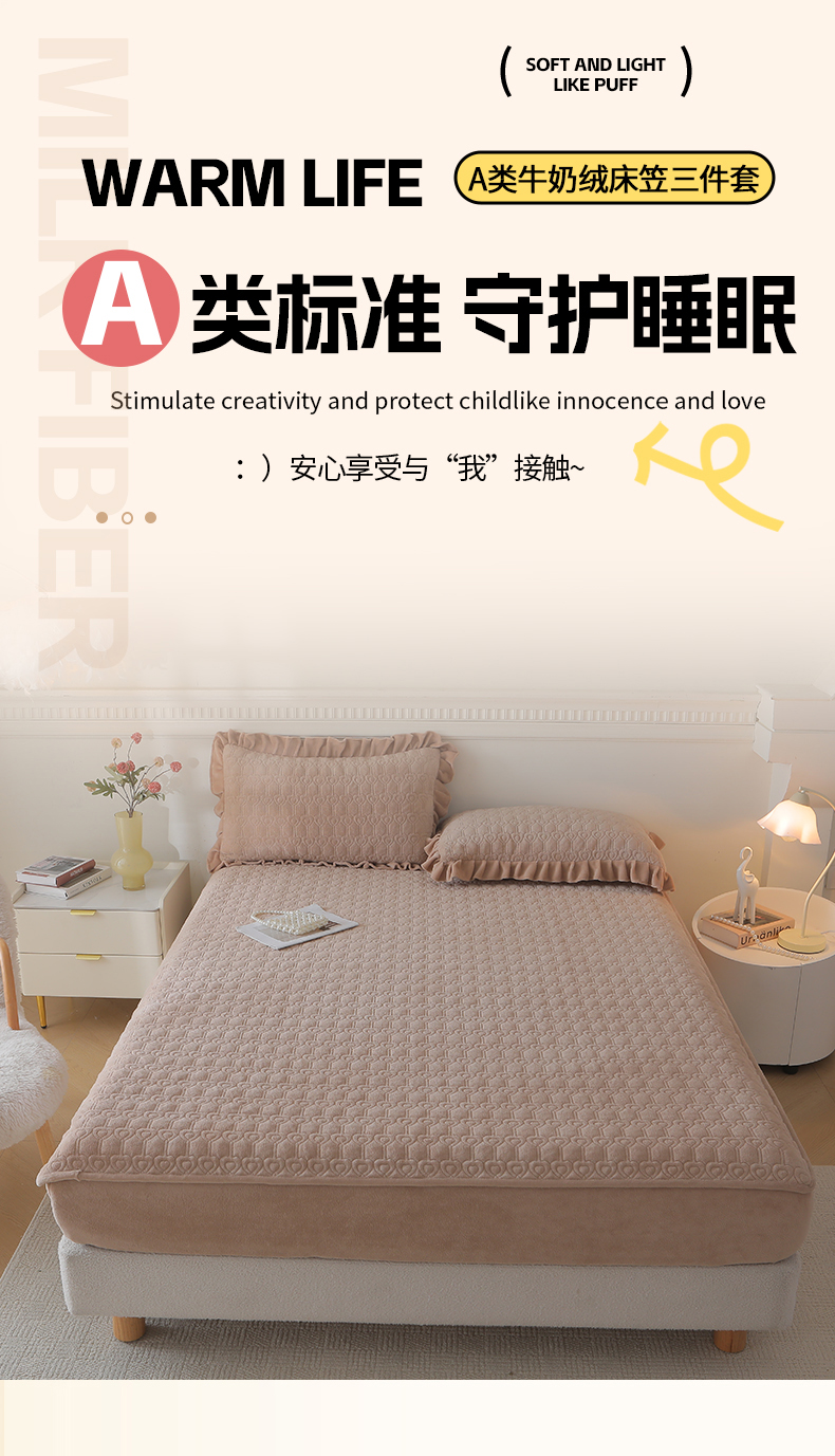• 91家纺网 家纺一手货源 找家纺 (总)怡源梦 2025新款A类牛奶绒夹棉床笠三件套-甜心公主系列,灰色,咖色,大红色,粉玉色,绿色,米白色,紫色