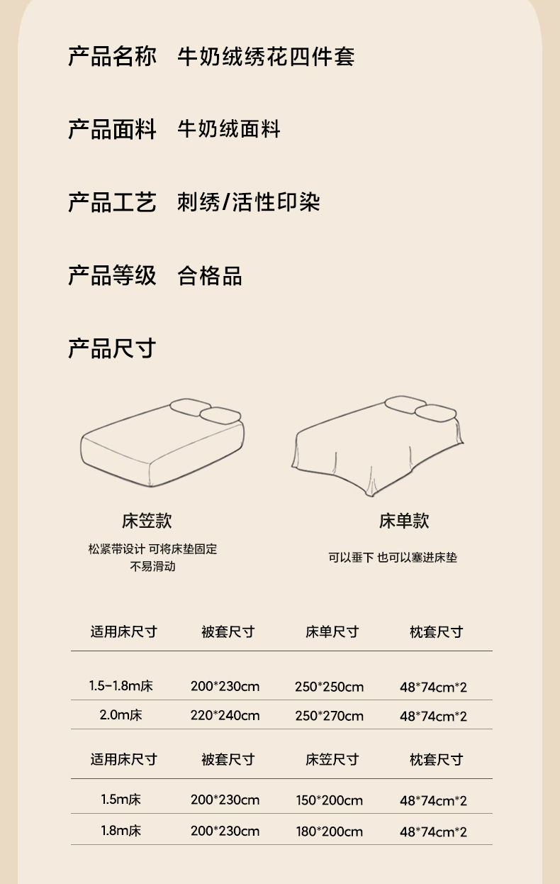 当前位置: 91家纺网 > 商品网购 > 床品套件 > 四件套 > 牛奶绒四件套 > 卡初家居(原微来) 2025新款A类秋冬亲肤牛奶绒刺绣款四件套-谧语系列(提供买家秀) 谧语-奶昔白