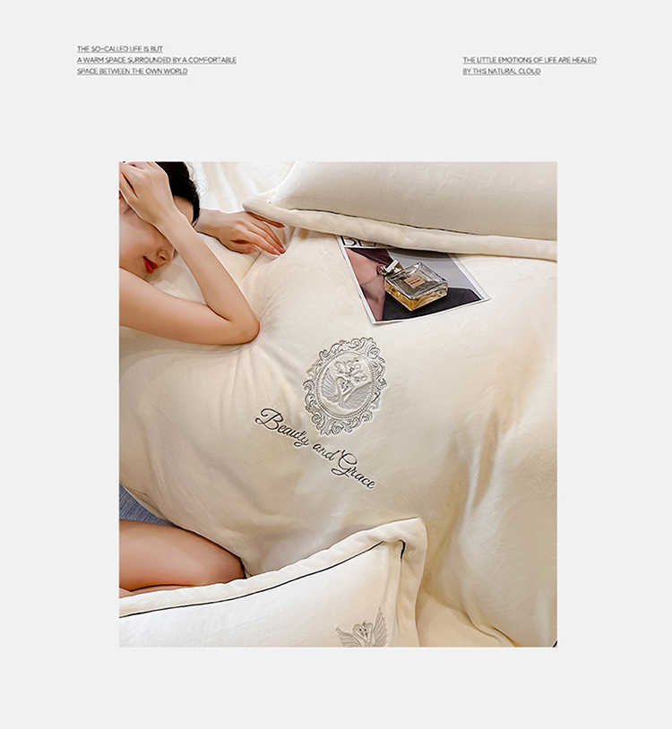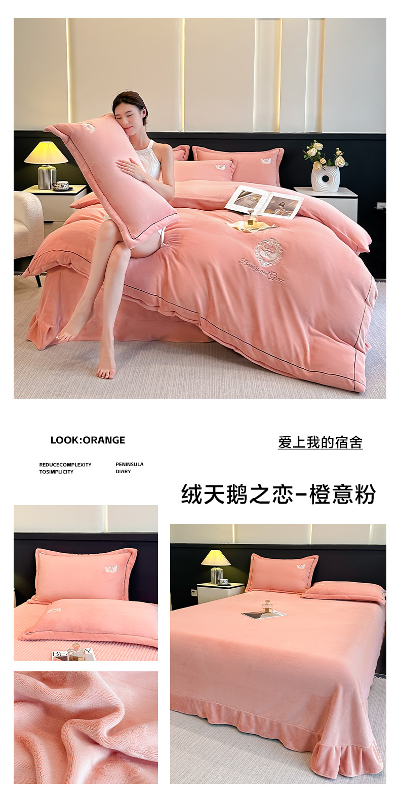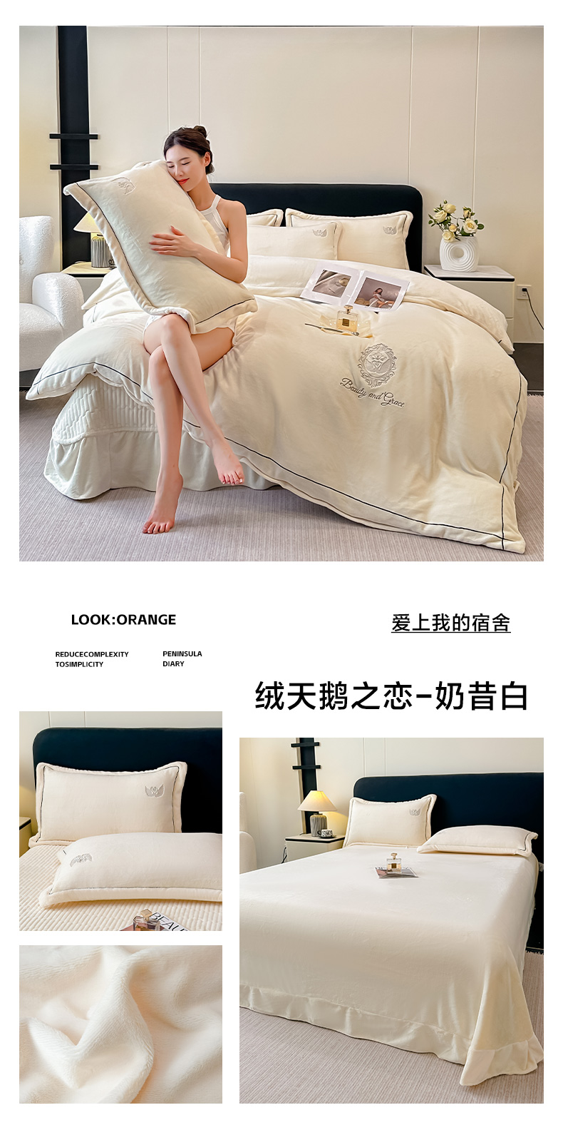 富米莱(原臻工厂) 2025新款高克重高端刺绣牛奶绒天鹅之恋床盖床单四件套 绒天鹅之恋-宾利蓝