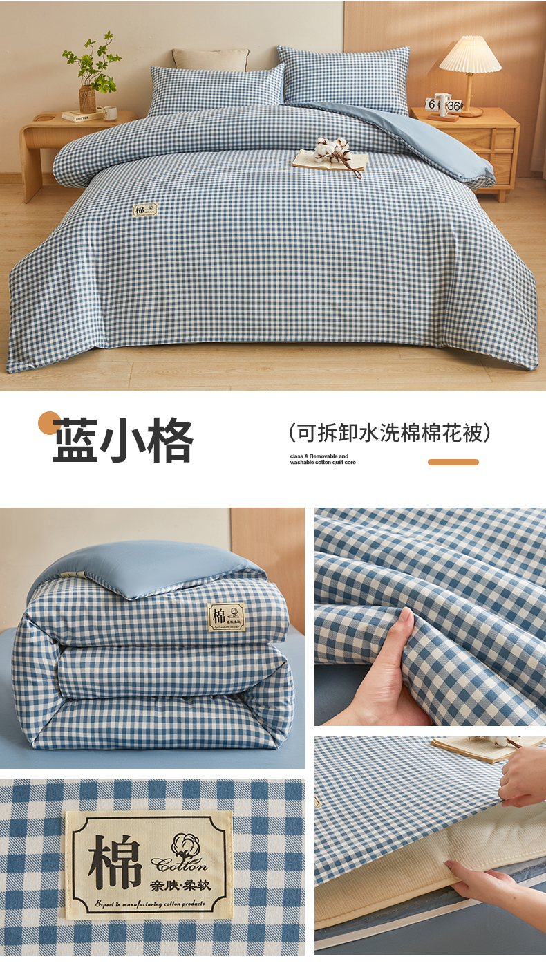 • 91家纺网 家纺一手货源 找家纺 逸居家纺  2025新款A类可拆洗水洗棉棉花被冬被 蓝小格