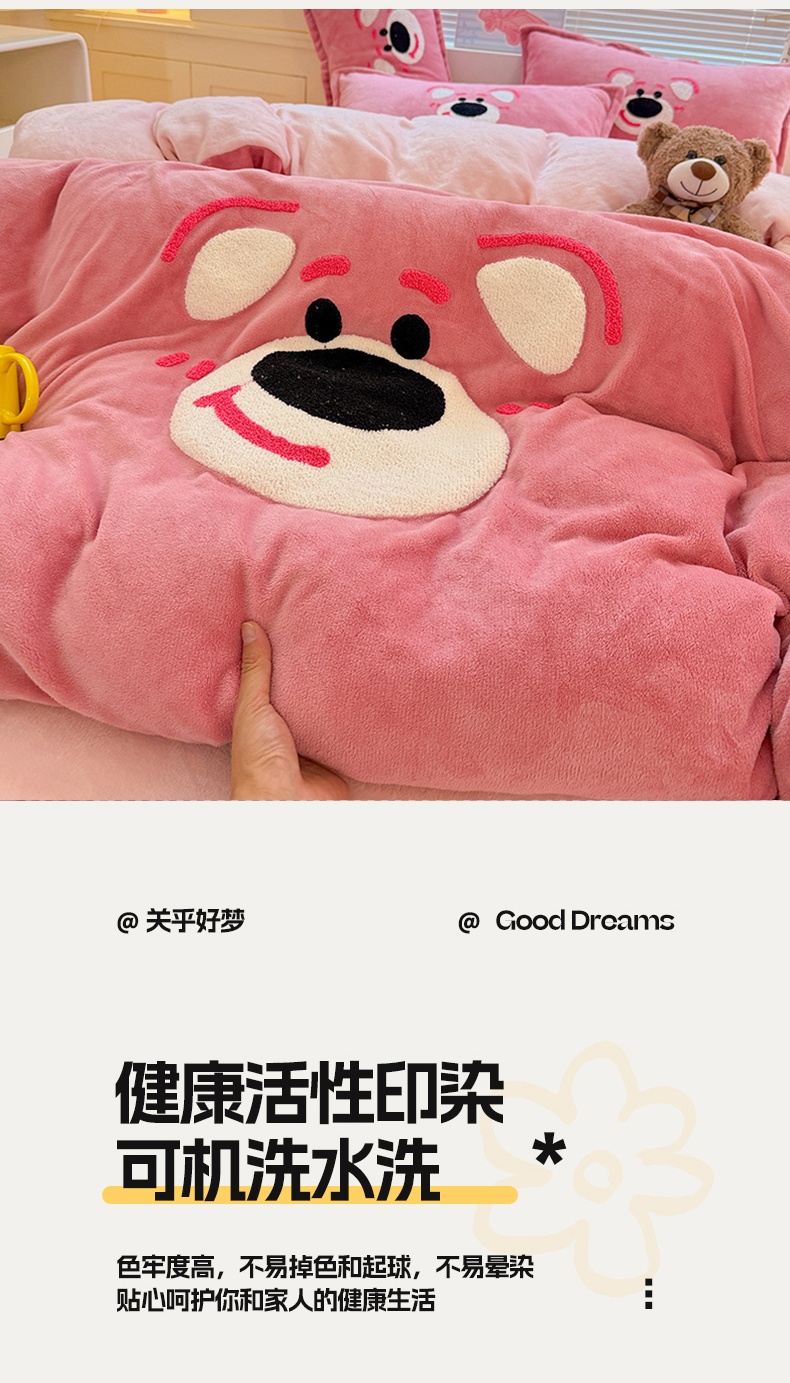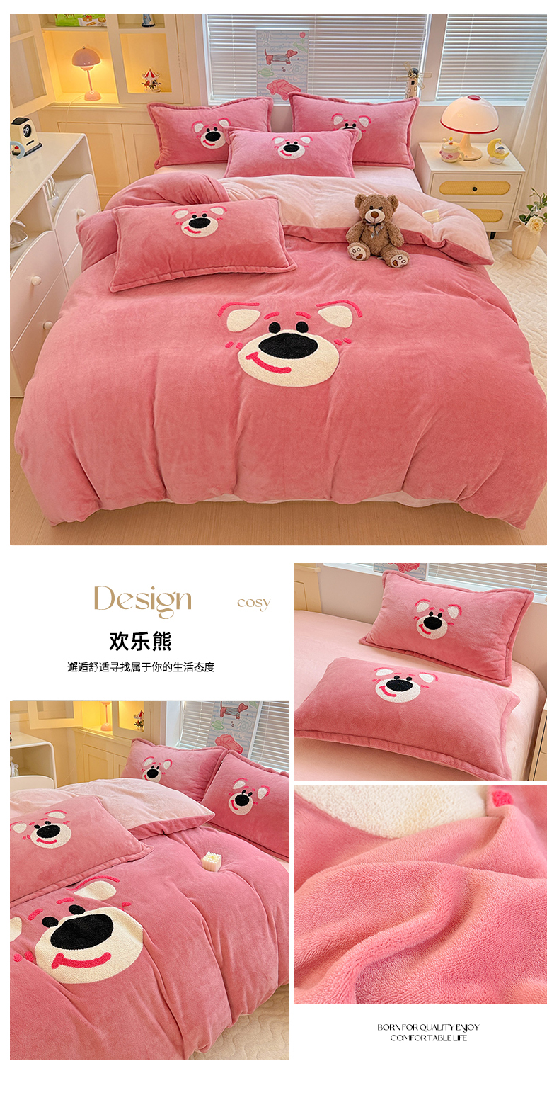 当前位置: 91家纺网 > 商品网购 > 床品套件 > 四件套 > 牛奶绒四件套 > KT猫直营店 2025新款高克重大版毛巾绣牛奶绒卡通四件套 欢乐熊