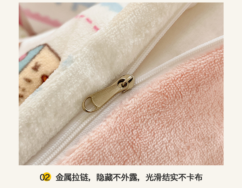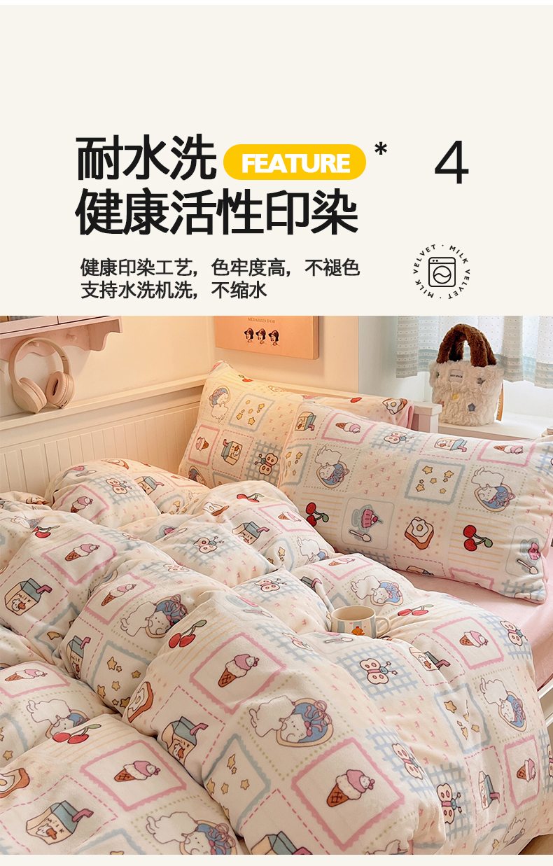 商品名称:桃子家居 2025新款A类ins小清新少女奶油卡通可爱加厚牛奶绒四件套 绒-糖果屋