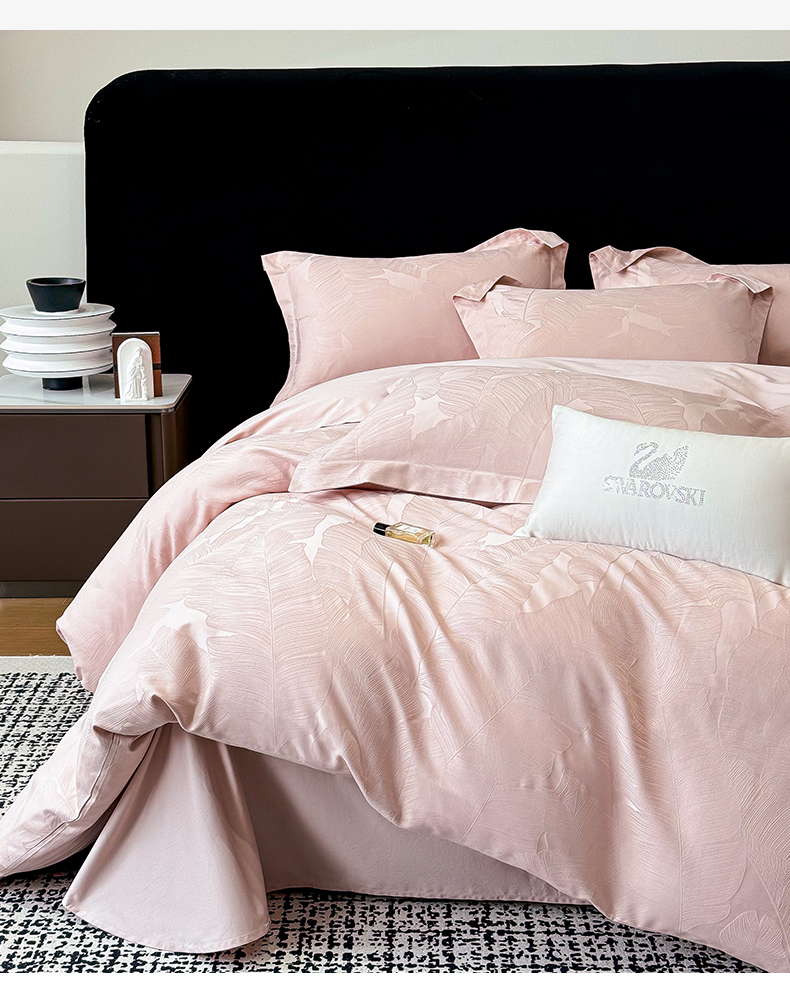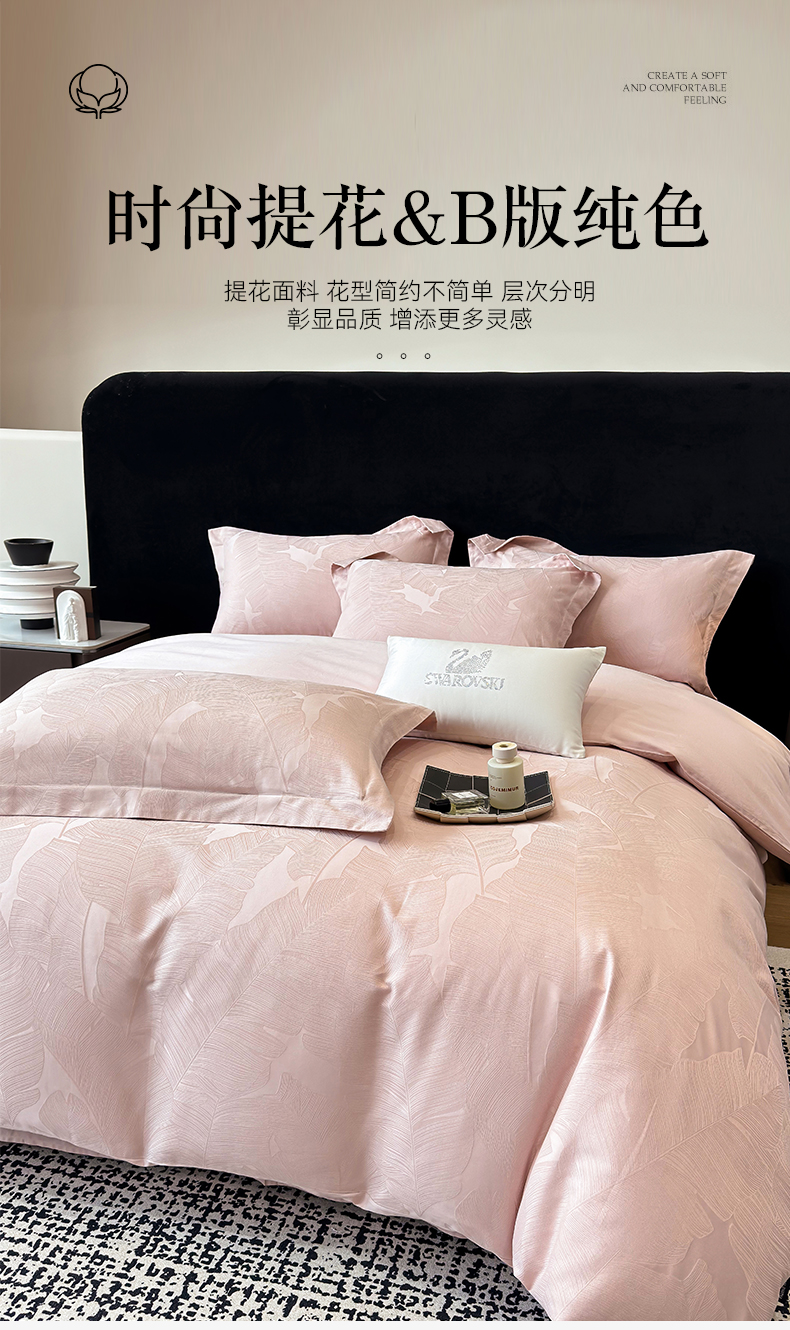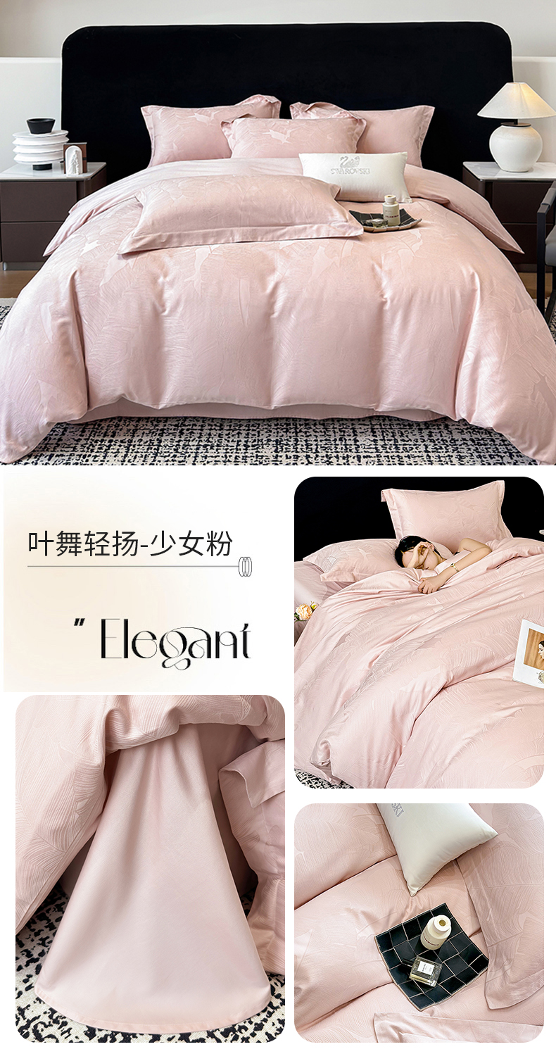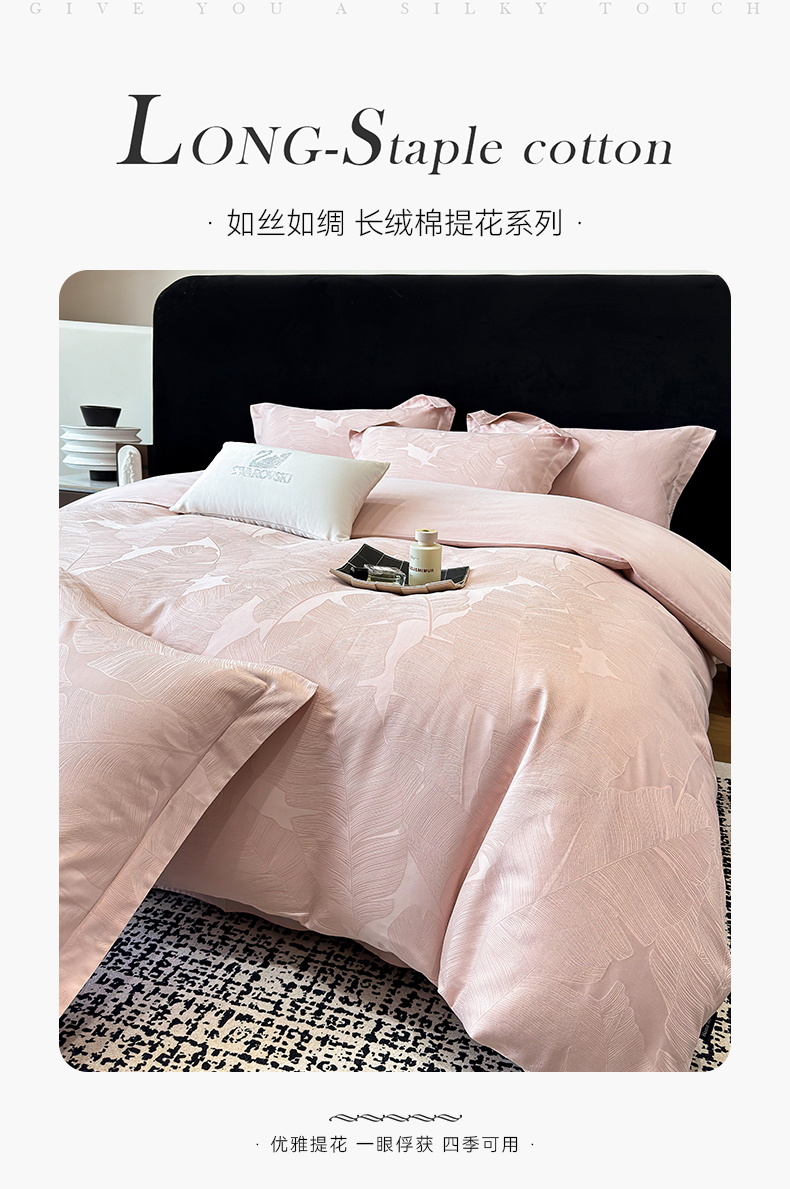 当前位置: 91家纺网 > 商品网购 > 床品套件 > 四件套 > 其它四件套 > 家居1号家纺 2025新款长绒棉纯棉提花四件套叶舞轻扬 叶舞轻扬-少女粉