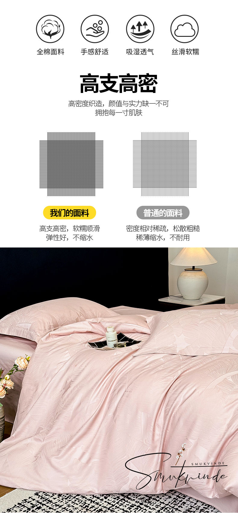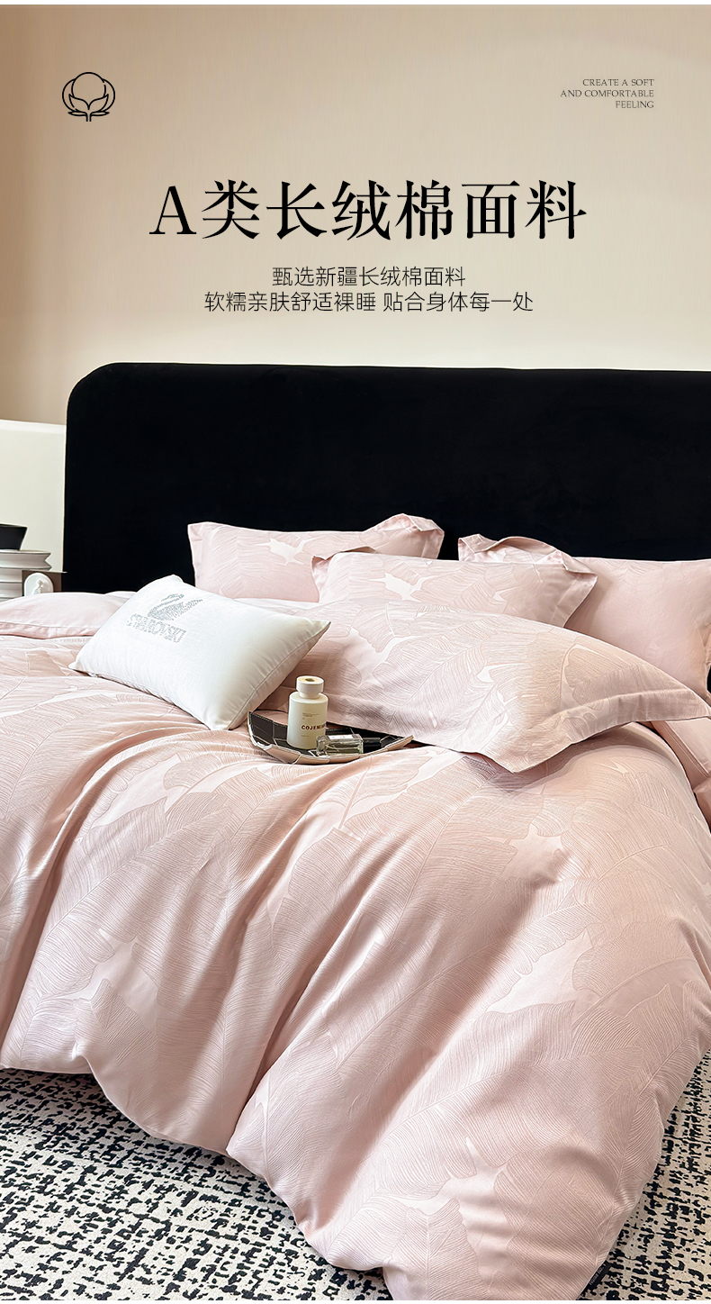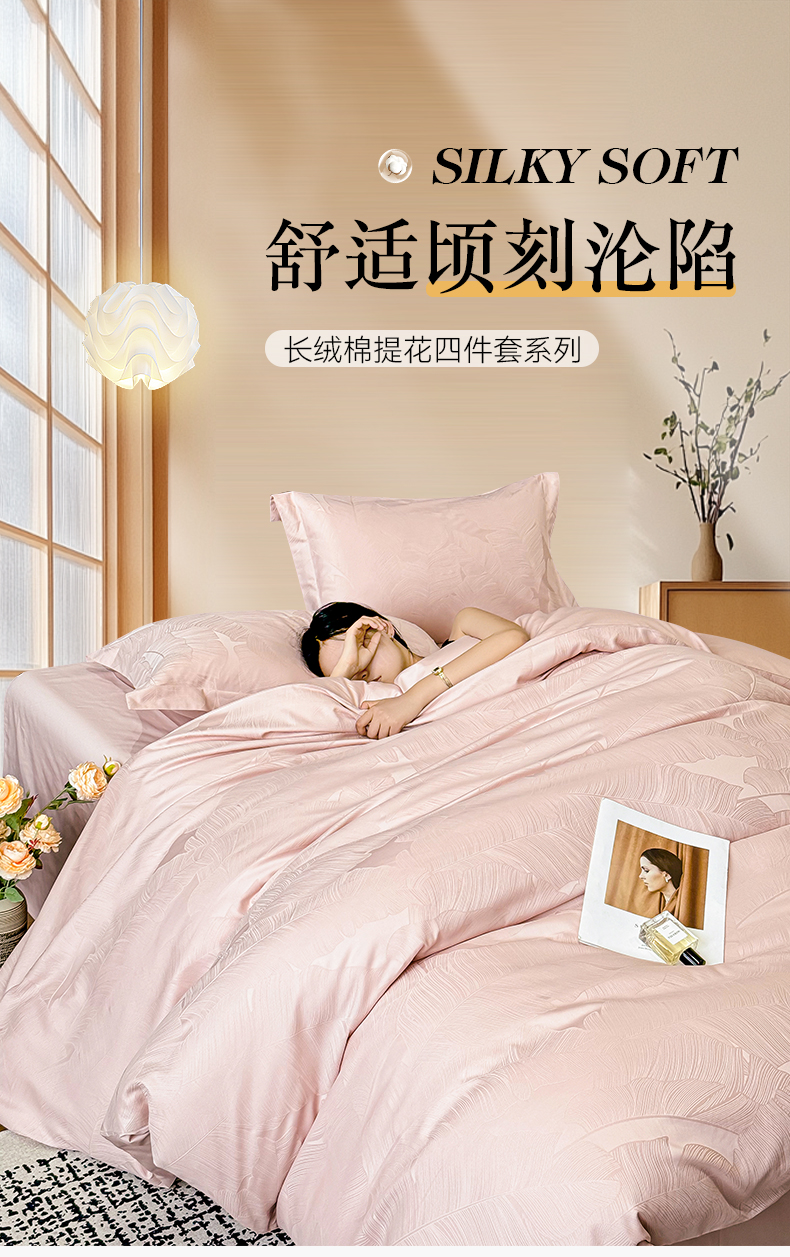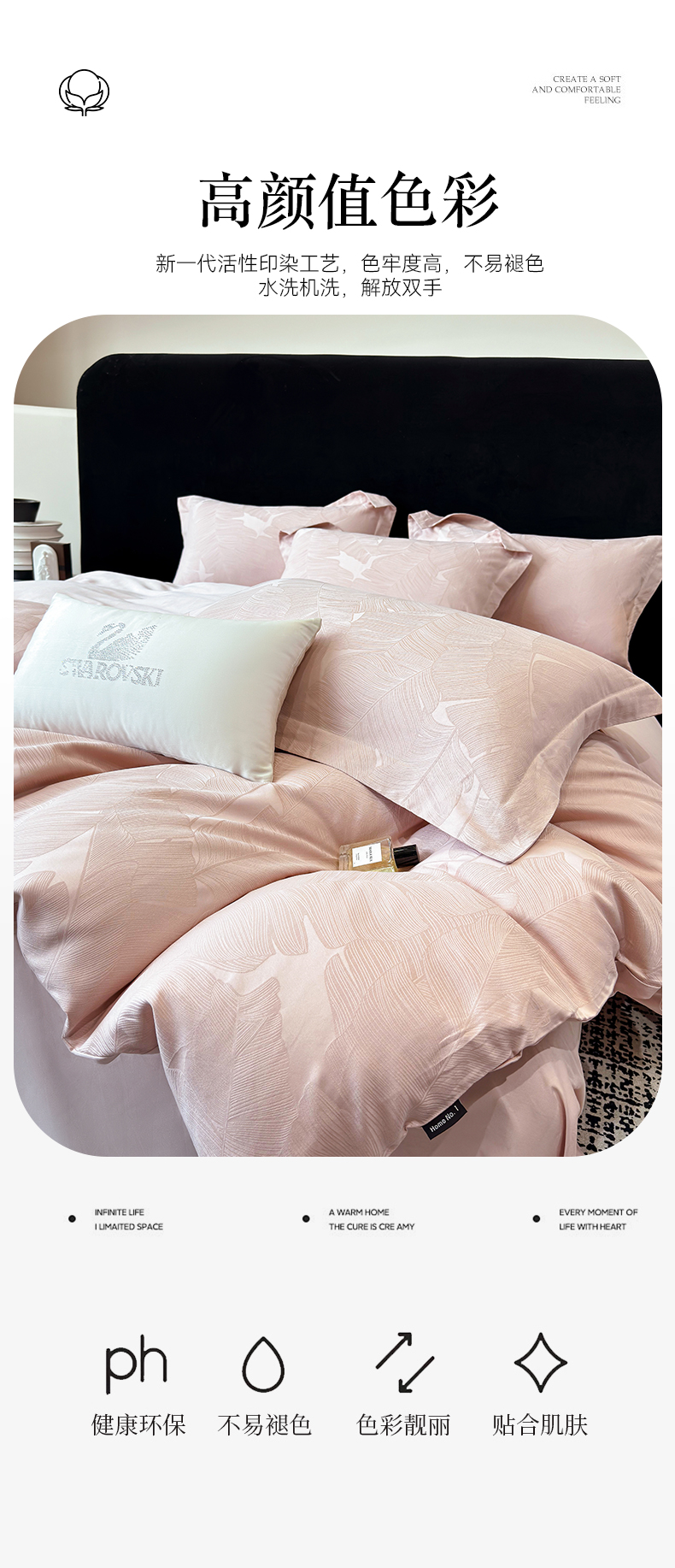 当前位置: 91家纺网 > 商品网购 > 床品套件 > 四件套 > 其它四件套 > 家居1号家纺 2025新款长绒棉纯棉提花四件套叶舞轻扬 叶舞轻扬-少女粉