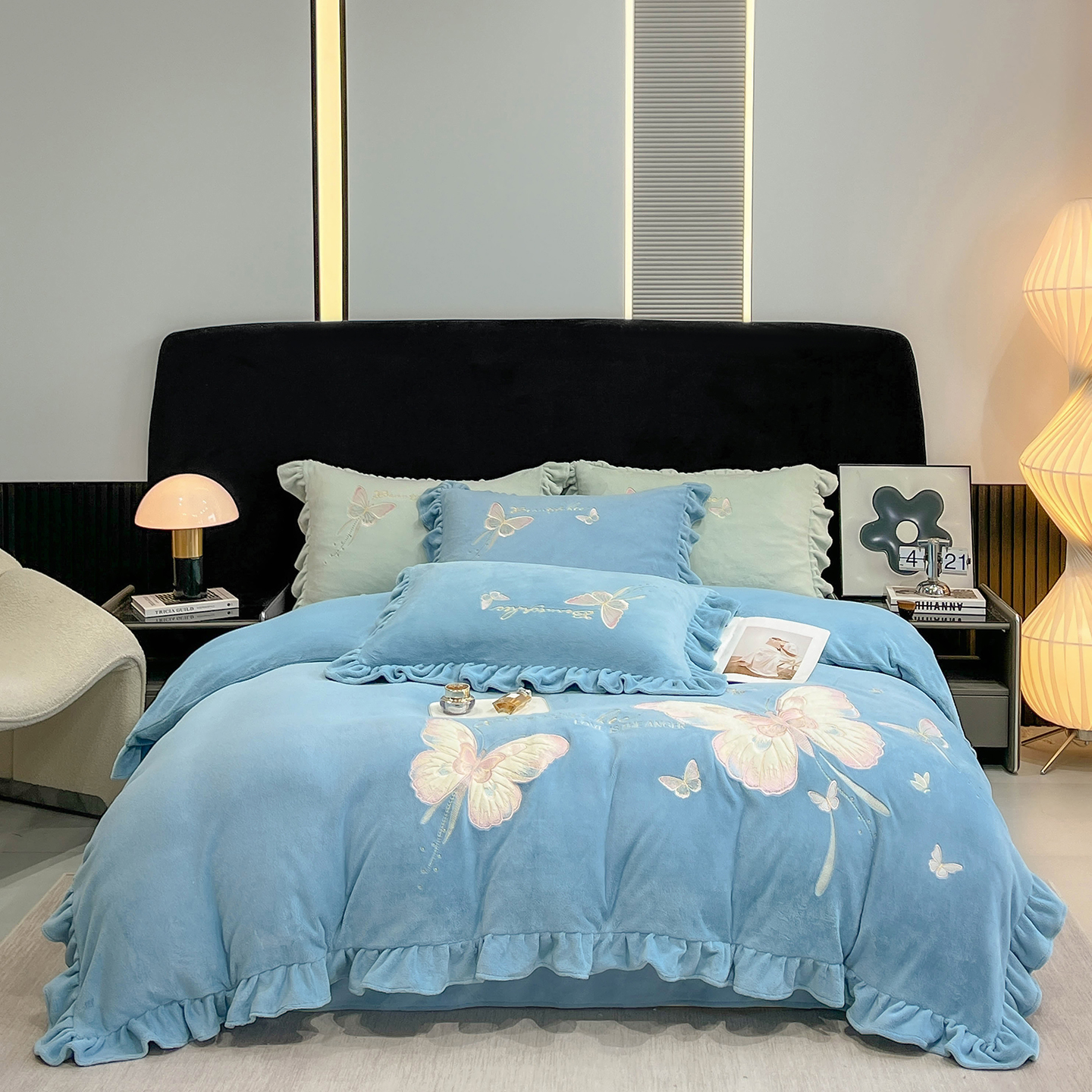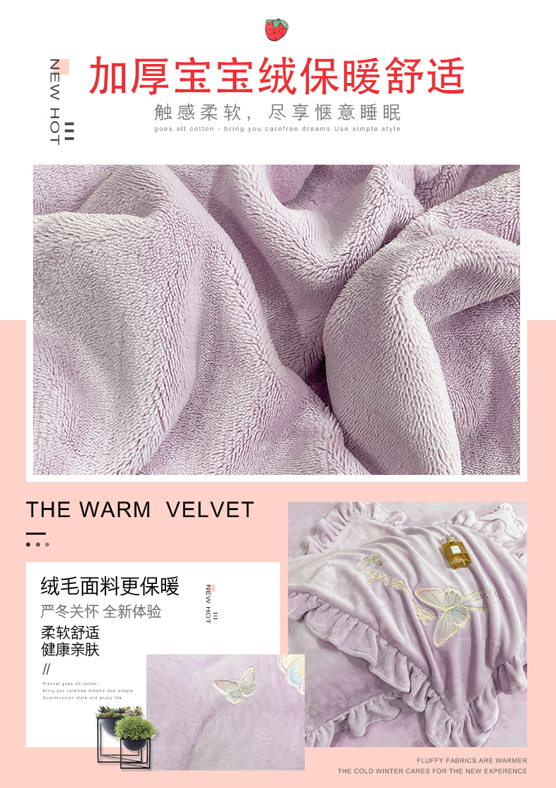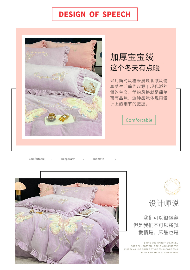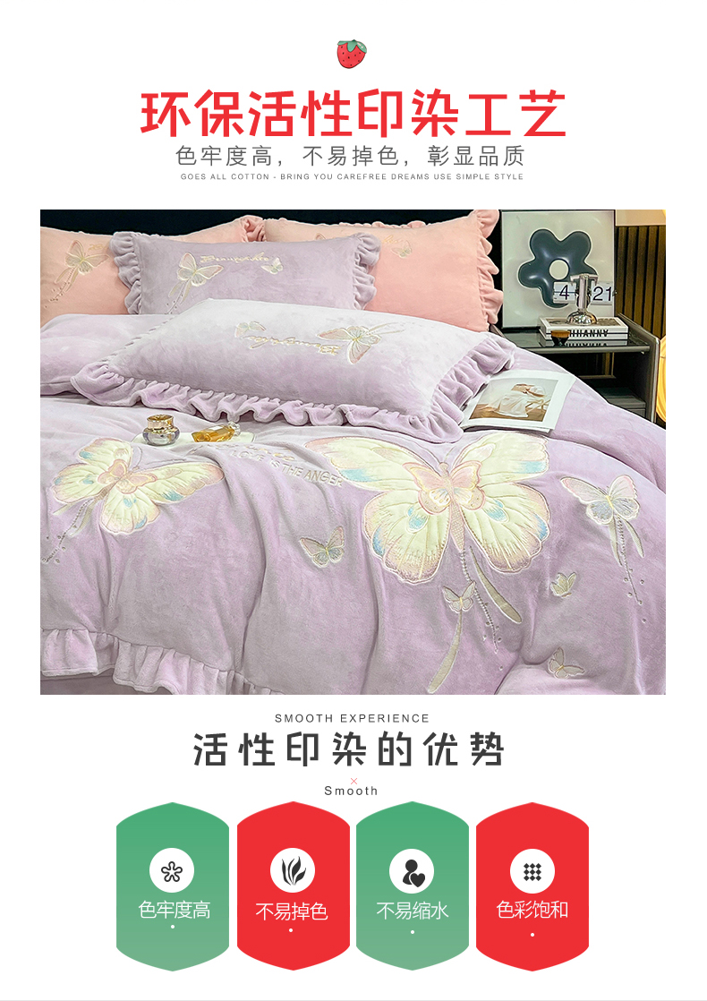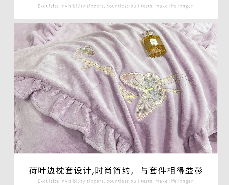 商品名称:悦织湾家纺 2025新款230克9.5斤重牛奶绒宝宝绒贴布绣四件套蝴蝶款高密保暖轻奢时尚床上用品四件套 蝴蝶-丁香紫