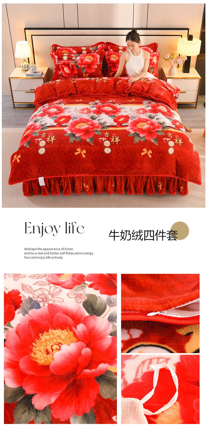 商品名称:雨洋2025新款加厚保暖8.5斤牛奶绒金貂婴儿绒四件套 吉祥如意