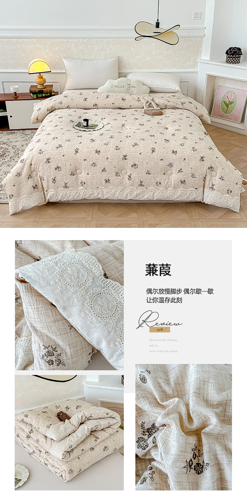 (总)芯恋 25年新款亚麻风全棉花边云感冬被四季被加厚冬被,苍兰,瑰丽,花弄影,花影,蒹葭,落霞,晚秋,云清