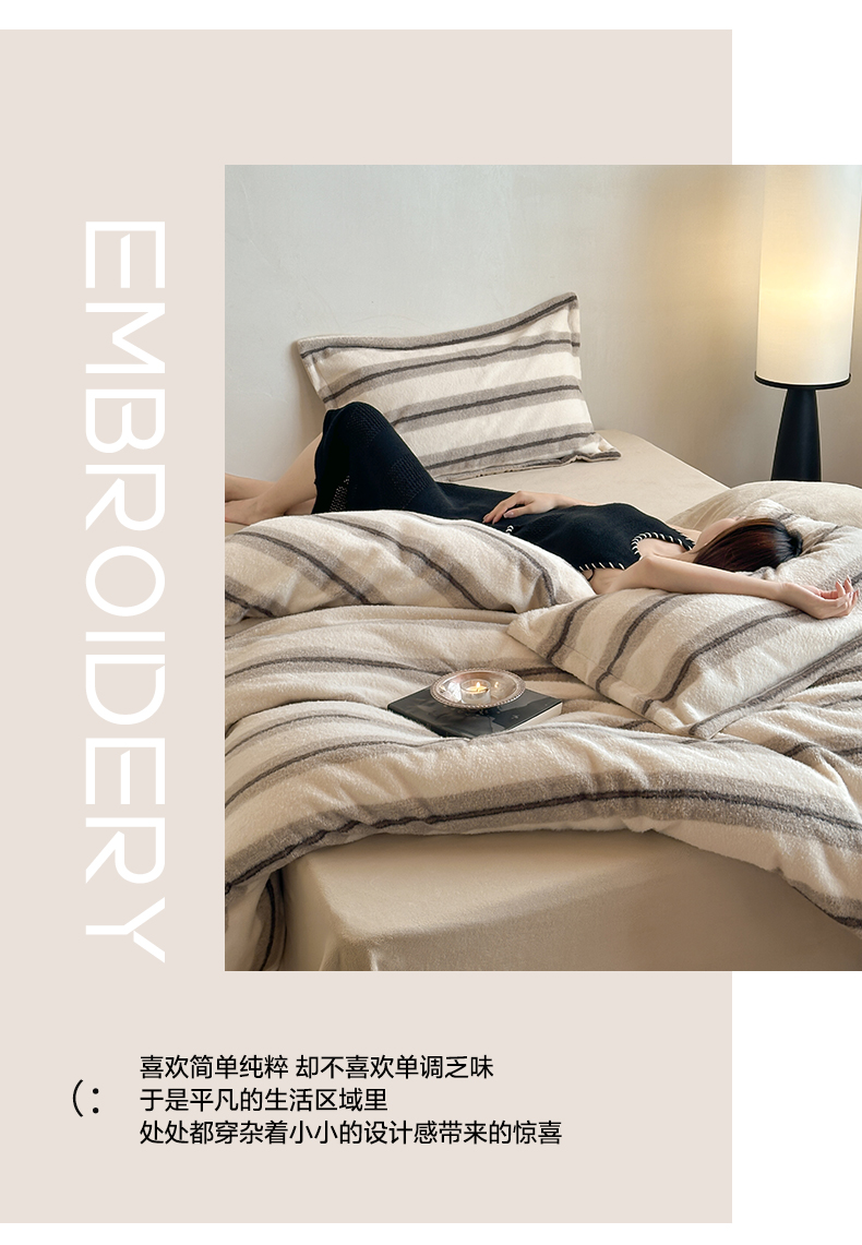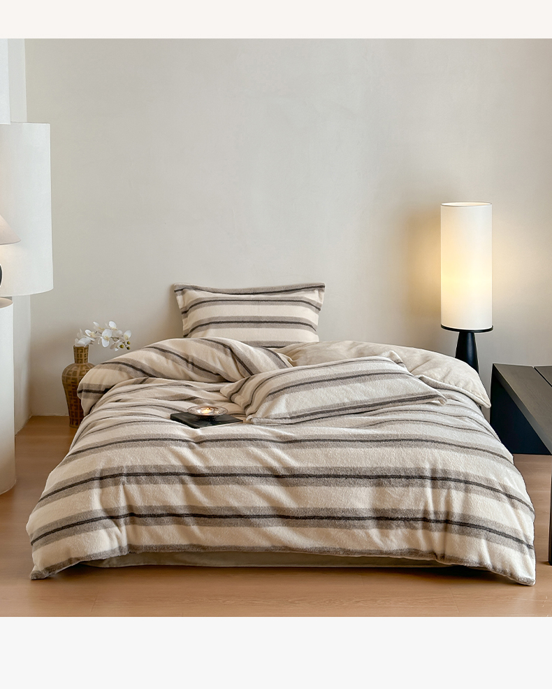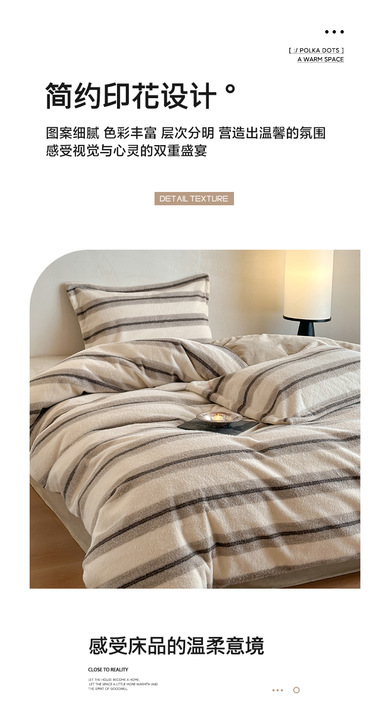 商品名称:凯罗 2025新款仿羊绒四件套高克重牛奶绒四件套仿羊绒格子条纹四件套 意韵-卡其