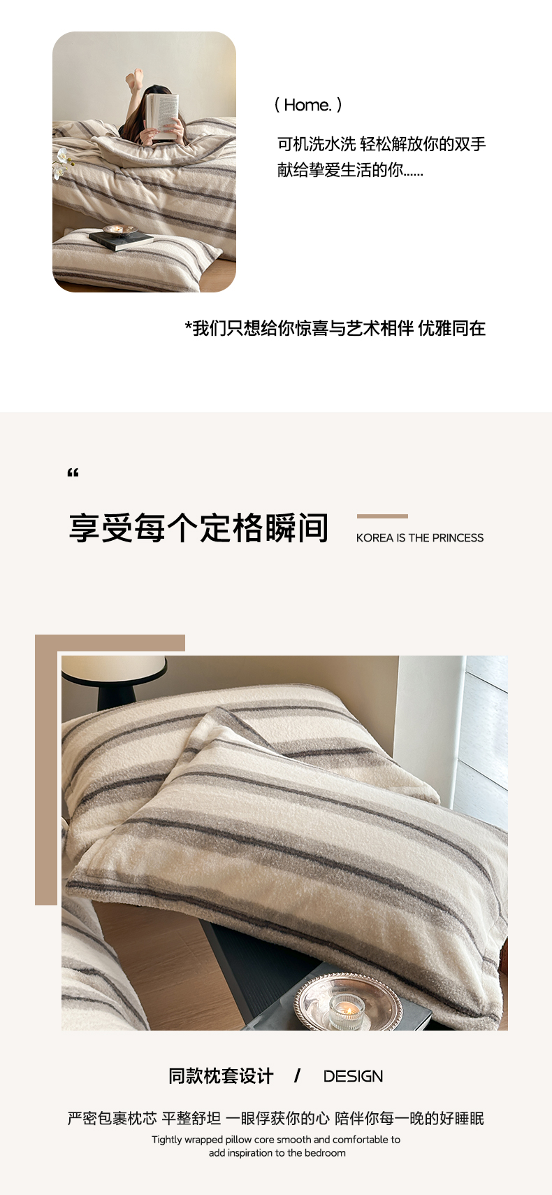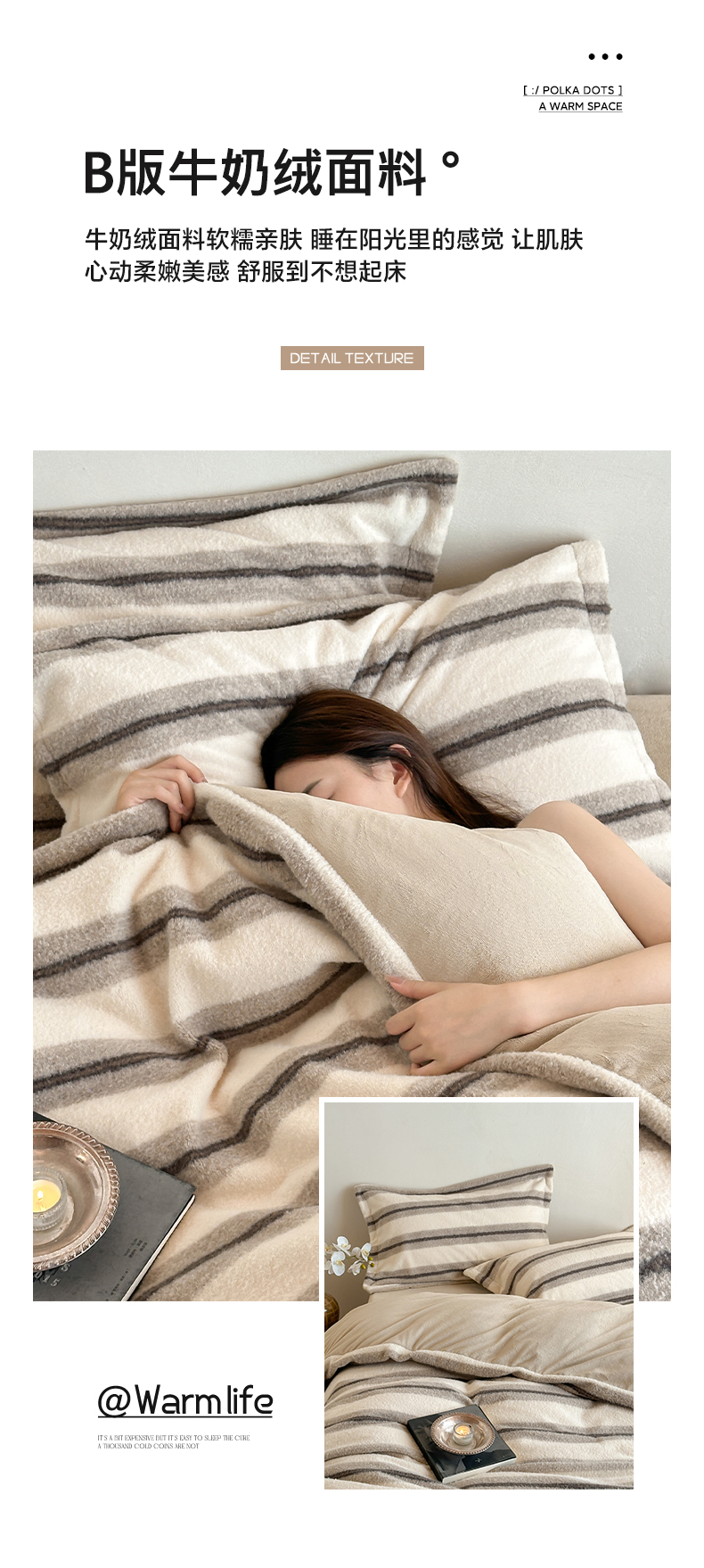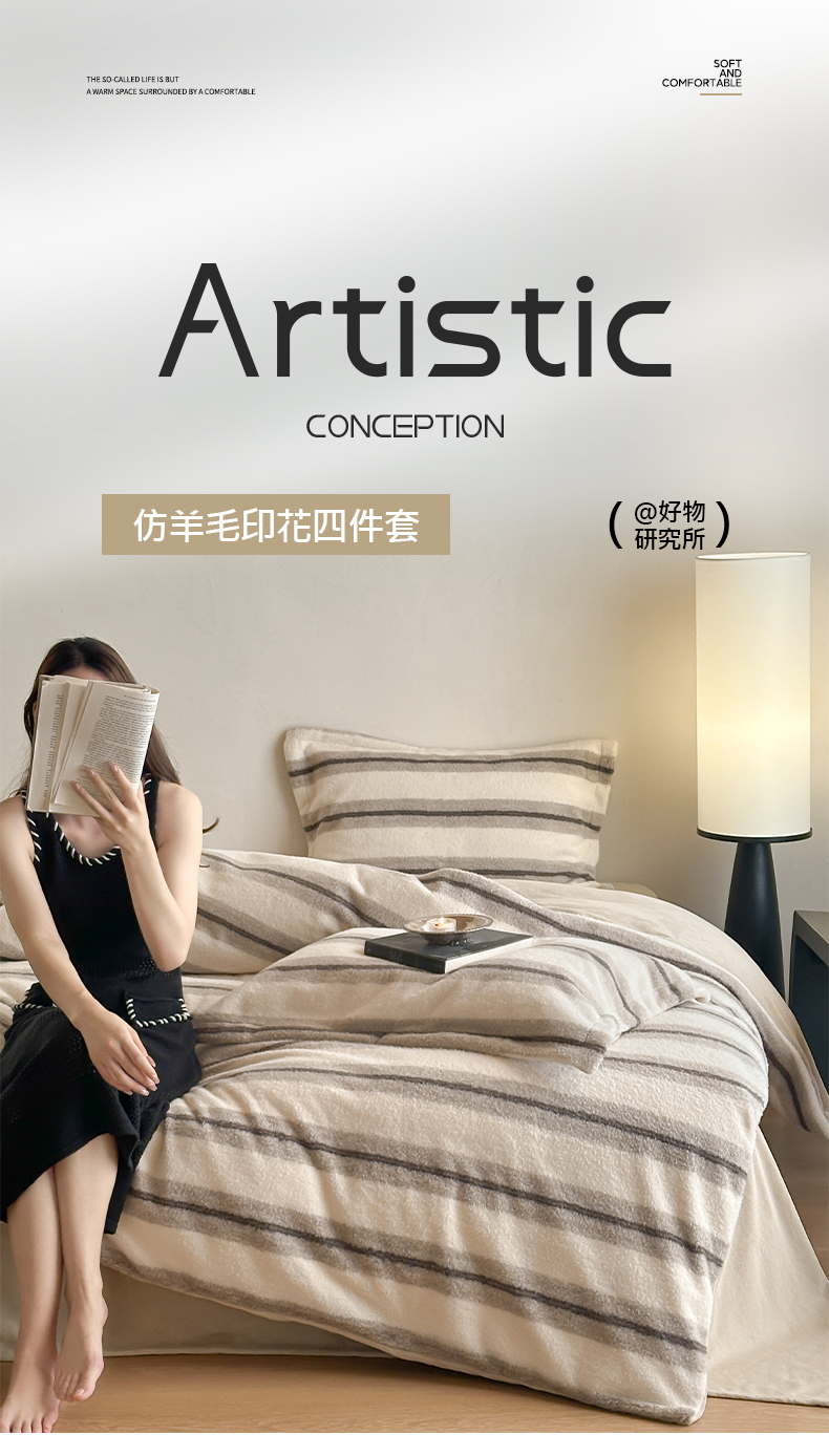 商品名称:凯罗 2025新款仿羊绒四件套高克重牛奶绒四件套仿羊绒格子条纹四件套 意韵-卡其