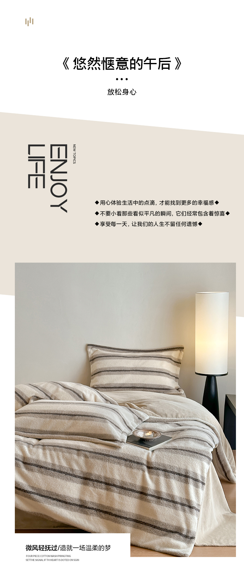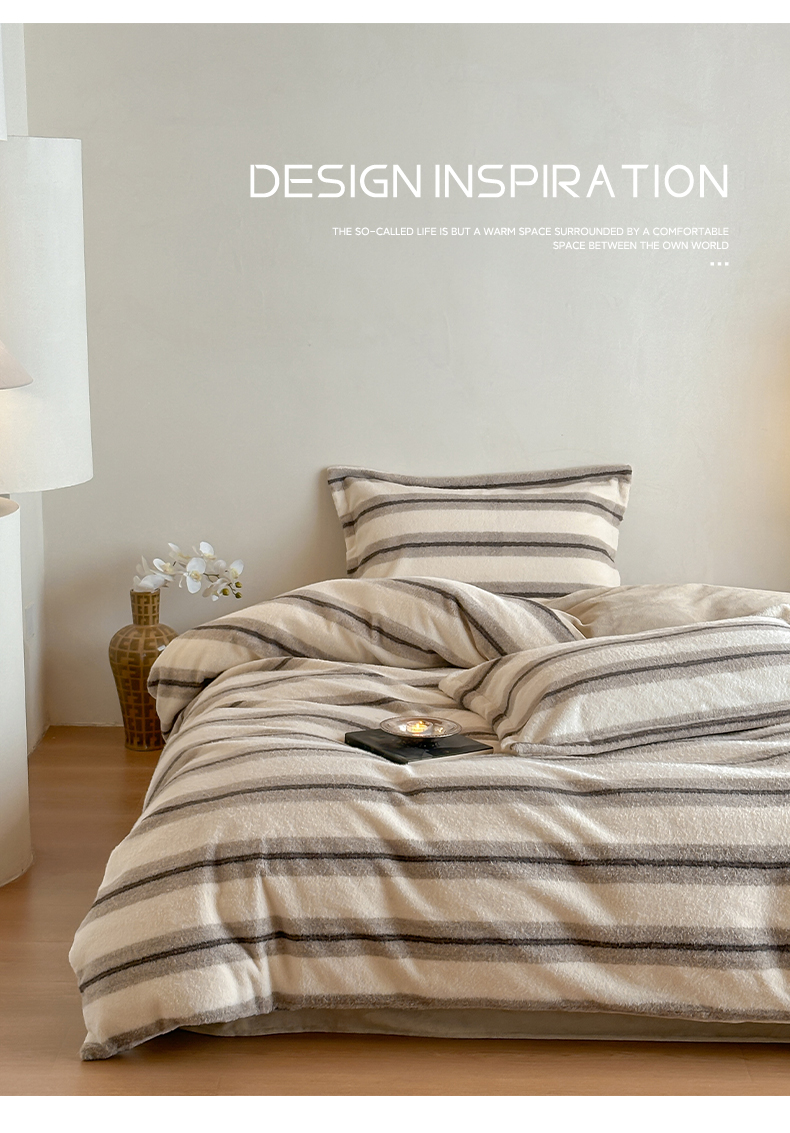 凯罗 2025新款仿羊绒四件套高克重牛奶绒四件套仿羊绒格子条纹四件套 意韵-卡其