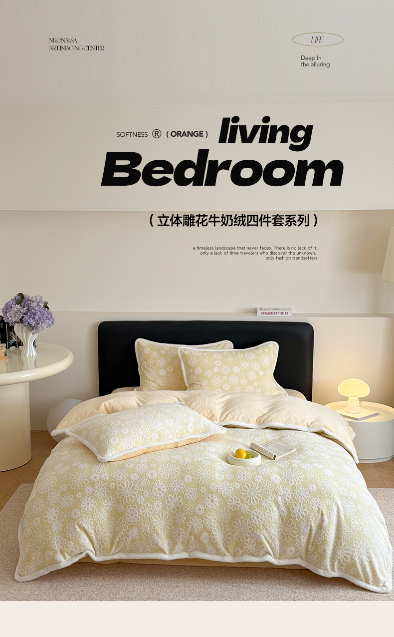 商品名称:(总)沐棉家居 2025新款高克重立体雕花牛奶绒保暖四件套