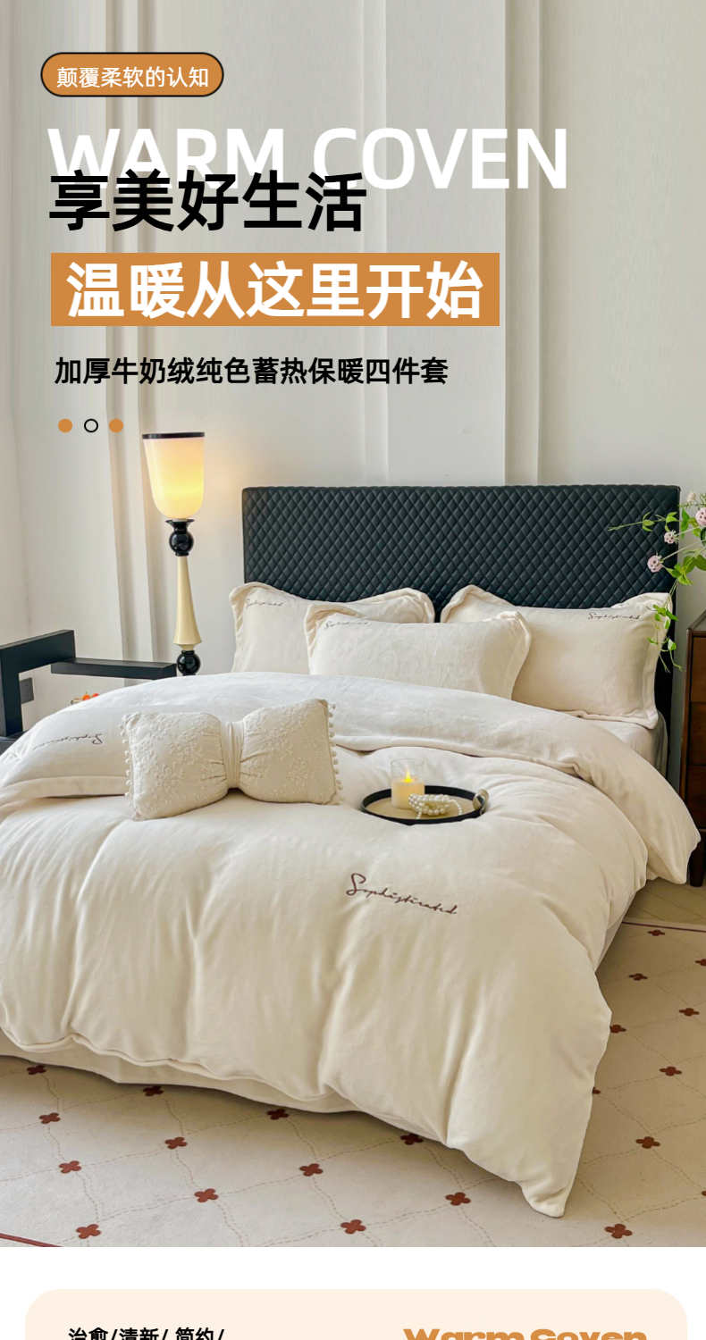 (总)庭笙 2025新款加厚牛奶绒8斤/9斤纯色蓄热保暖四件套-米莱,米莱-粉,米莱-灰,米莱-咖,米莱-米,米莱-紫