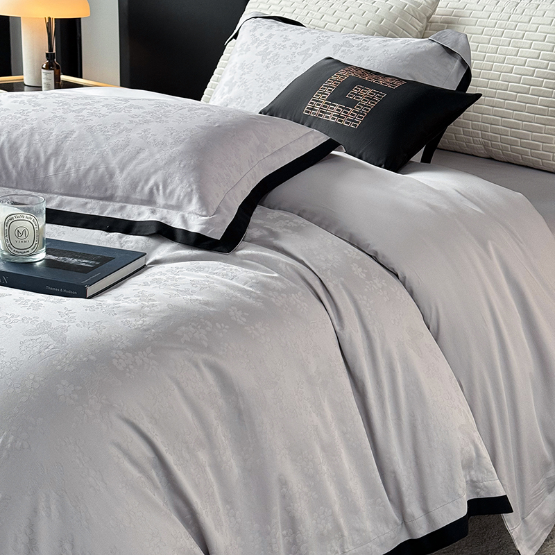 (总)若未家居2023新款轻奢意式50支全棉长绒棉四件套-水墨,贵族白,雾棕,烟蓝