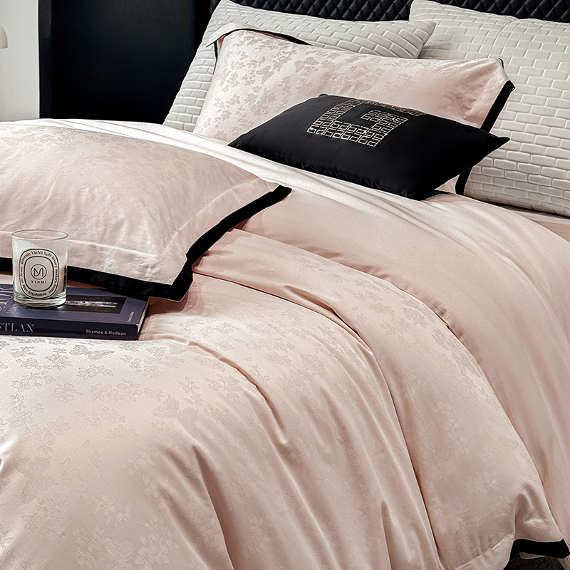 商品名称:若未家居 LOVEWE HOUSE 2025新款50S长绒棉提花轻奢撞色小黑边工艺四件套- 繁星 粉