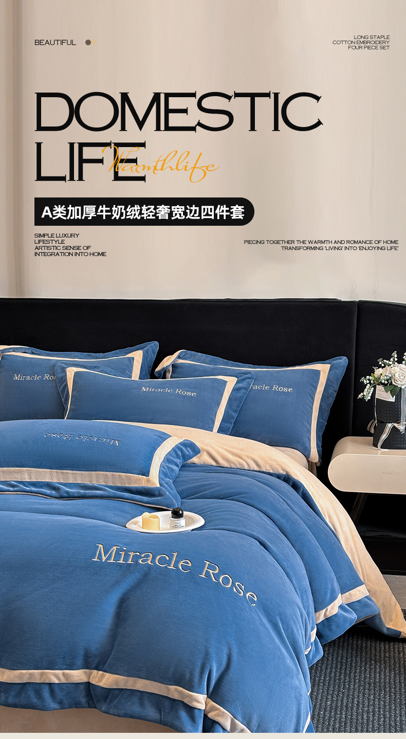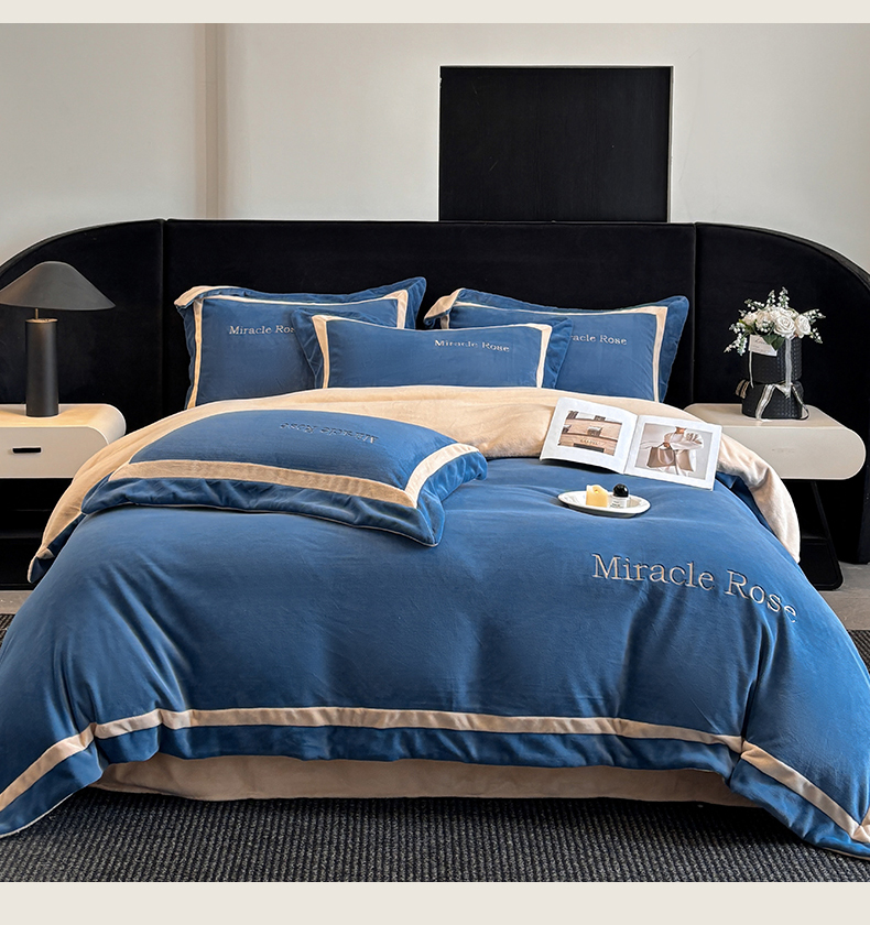当前位置: 91家纺网 > 商品网购 > 床品套件 > 四件套 > 牛奶绒四件套 > 笙意家纺 2025新款A类加厚牛奶绒轻奢宽边四件套-威登 威登-宾利蓝+香槟