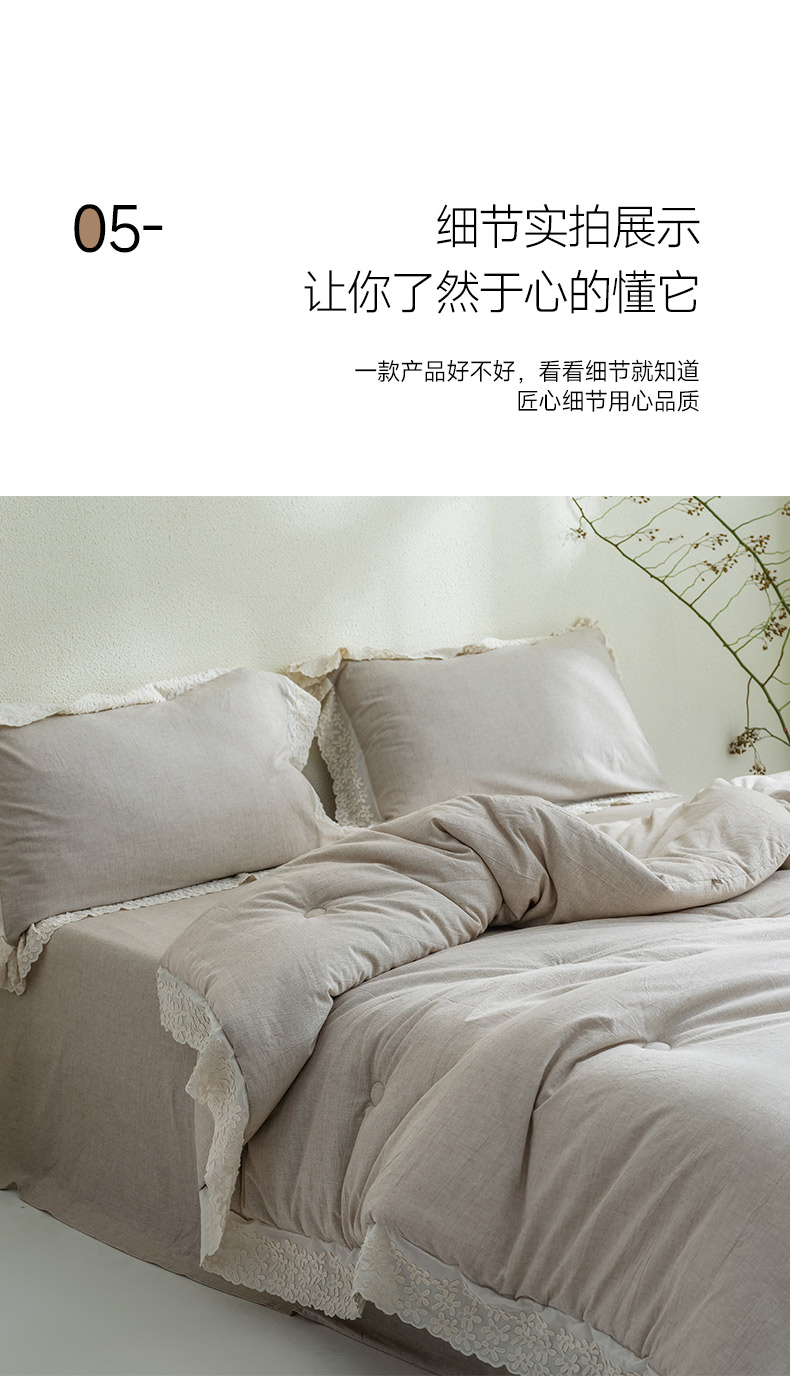 (总)桂雅居 2025新款舒适麻棉麻蕾丝花边单床盖床盖单件,海棠红,栗壳色,麻本色,烟墨灰,组合图仅供展示不可下单,手拎袋包装,清婉花语-灰,秋意-红,素锦-咖