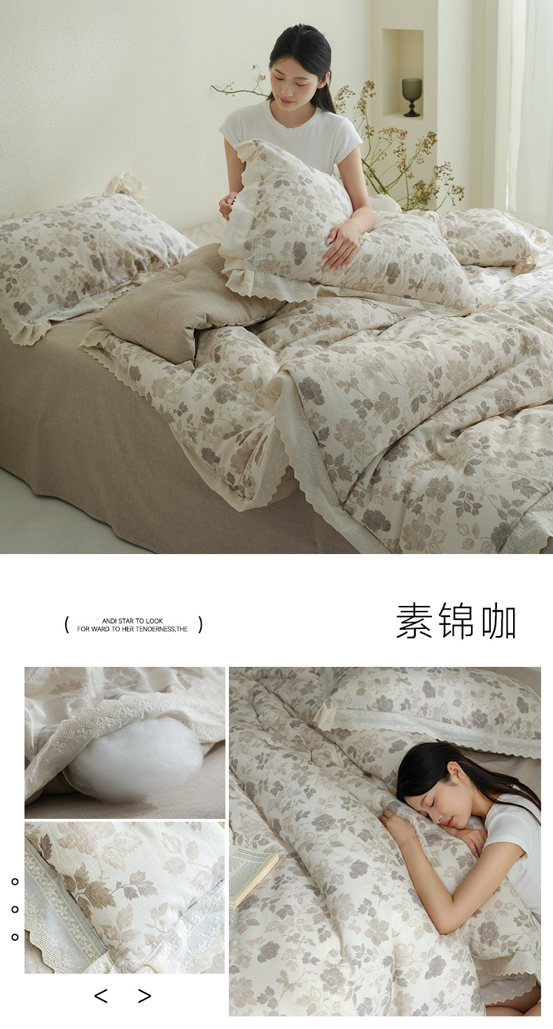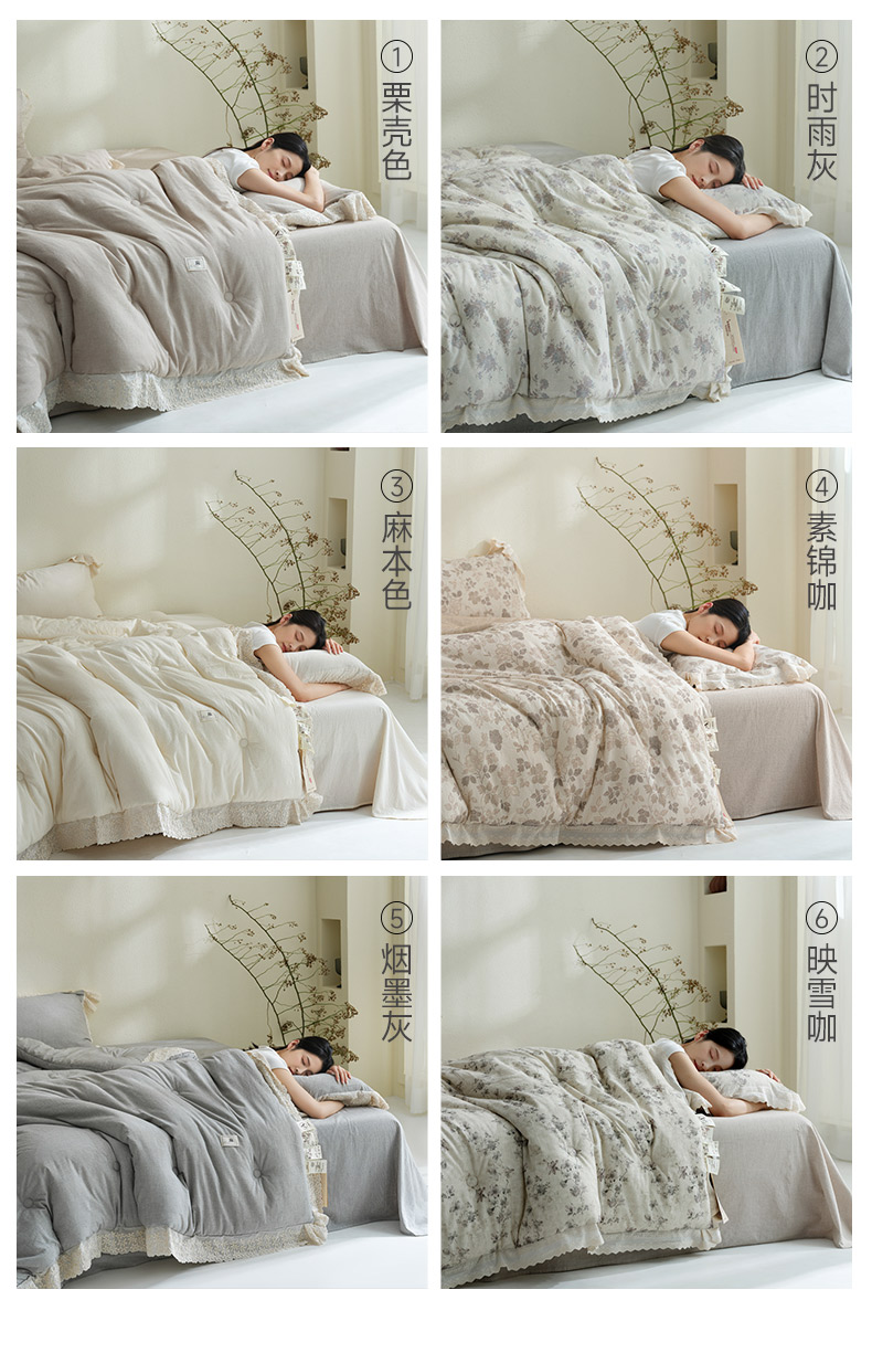 商品名称:(总)桂雅居 2025新款舒适麻棉麻数码印花蕾丝花边懒人被被子被芯