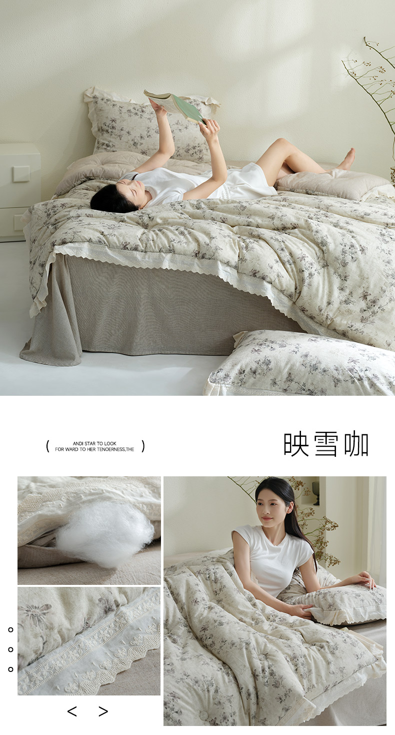 (总)桂雅居 2025新款舒适麻棉麻数码印花蕾丝花边懒人被被子被芯