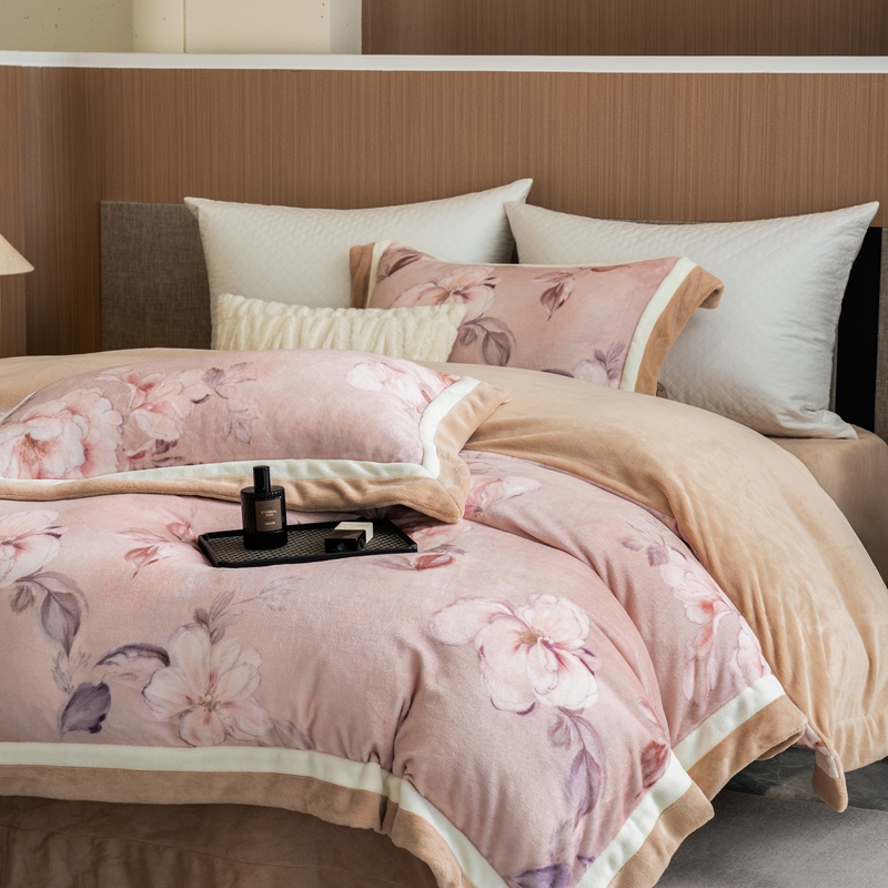 商品名称:瑞雪家居 2025新款全消光数码印花牛奶绒系列四件套 繁花似锦粉