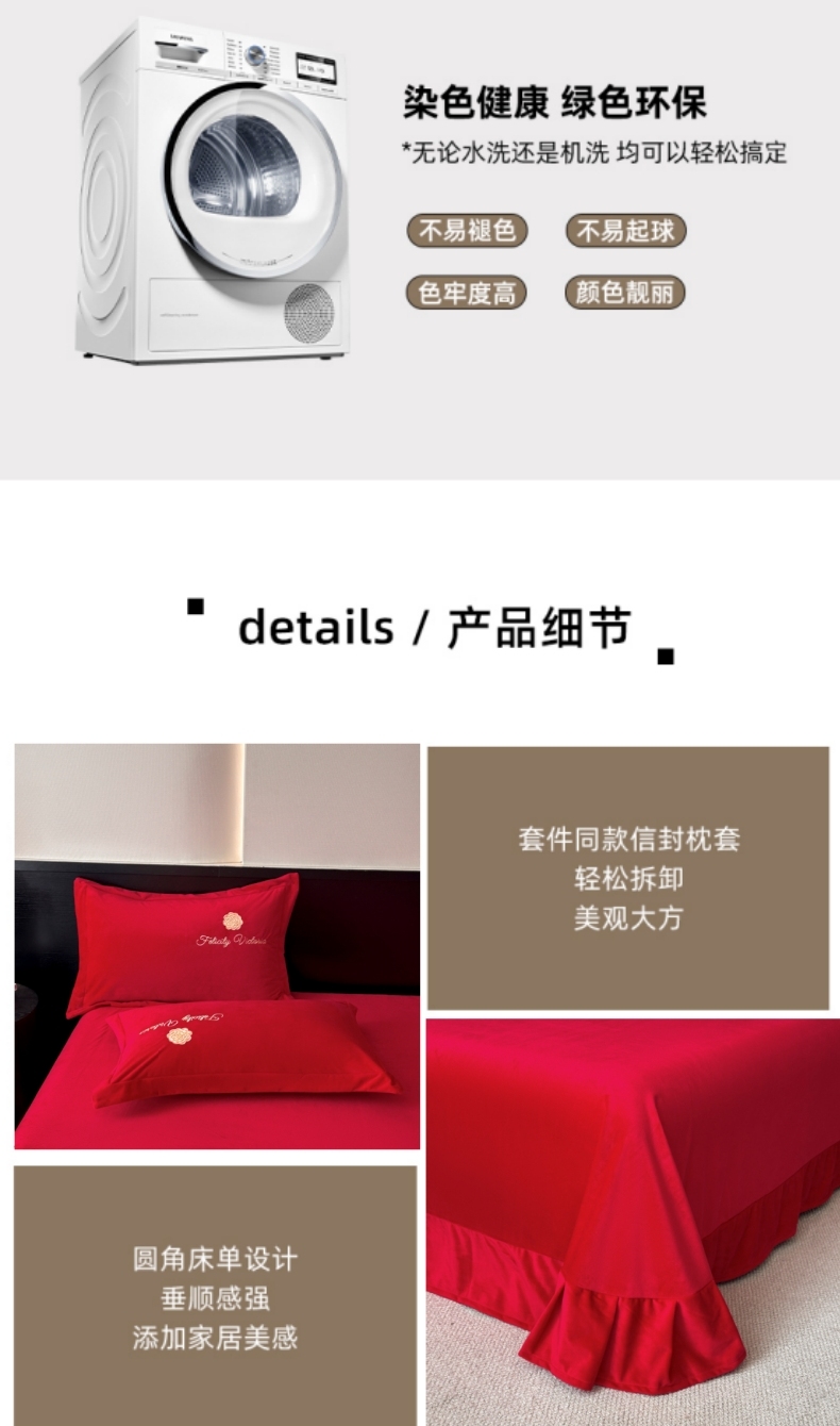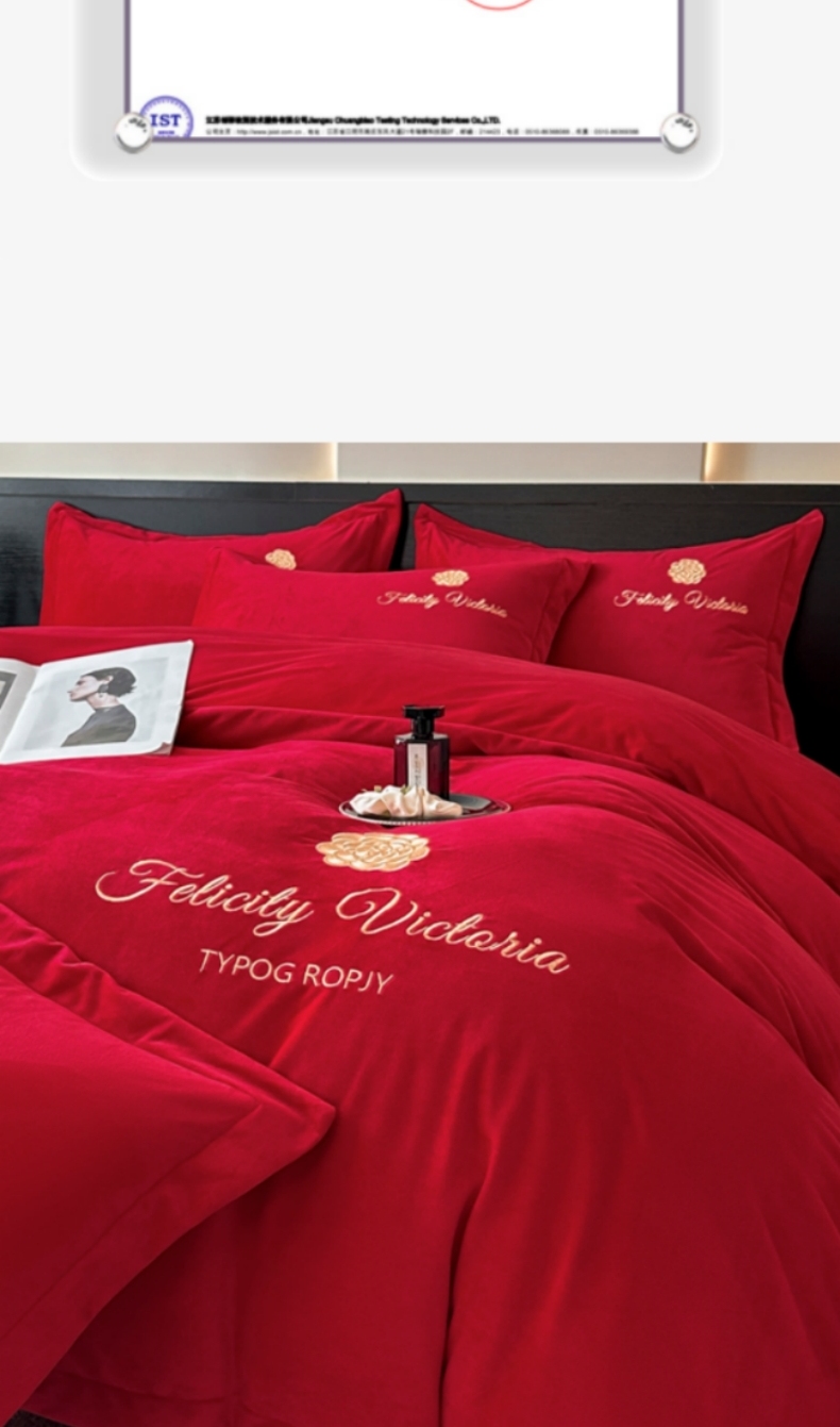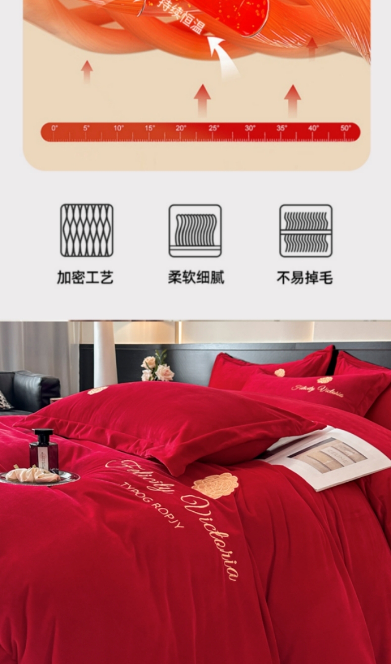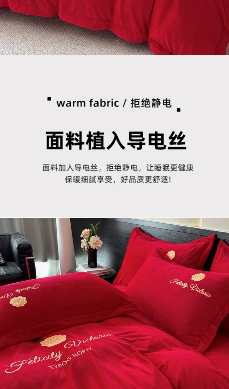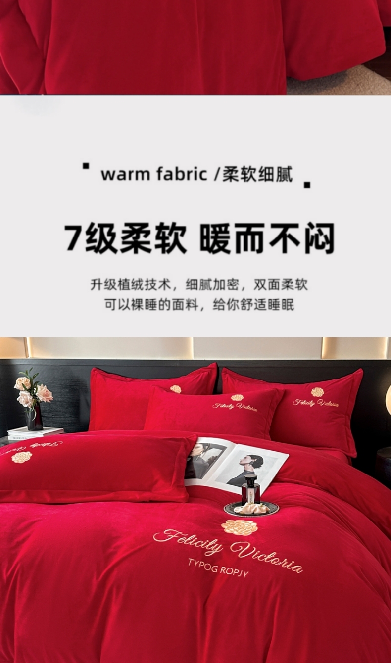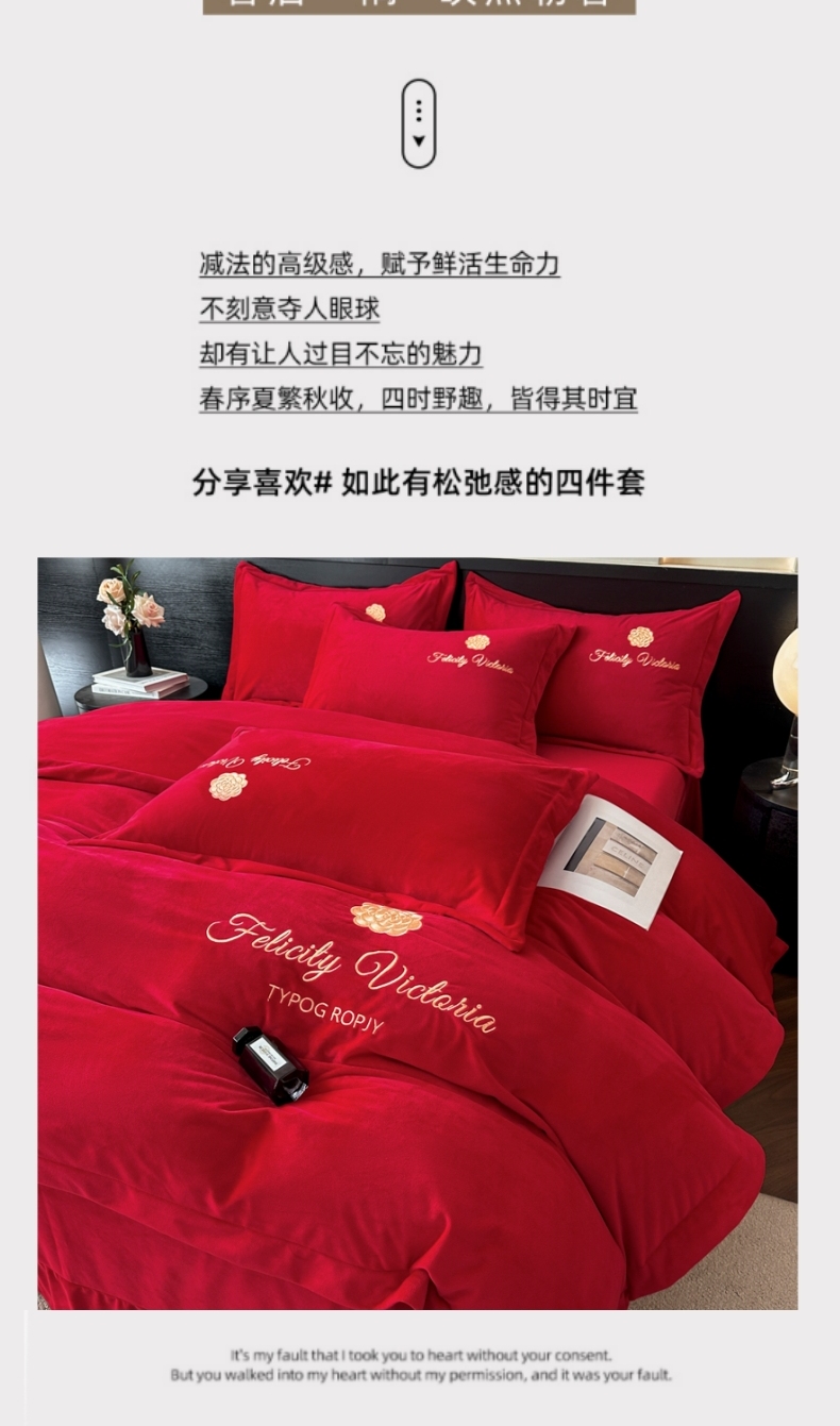 商品名称:鸿织源2025新款-茶颜系列 宝宝绒宽边四件套 茶颜-中国红
