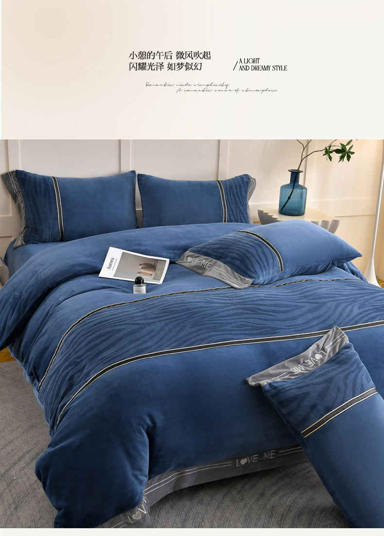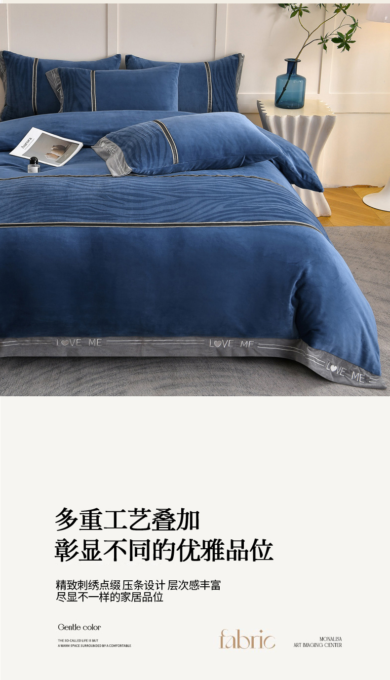 妮恒美家纺 2025新款刺绣婴儿绒工艺四件套-艾琳系列 艾琳-雾蓝