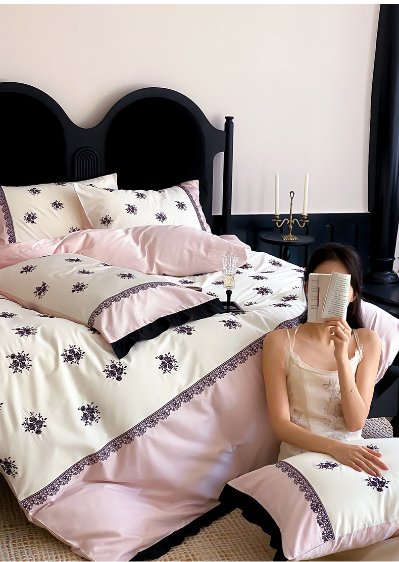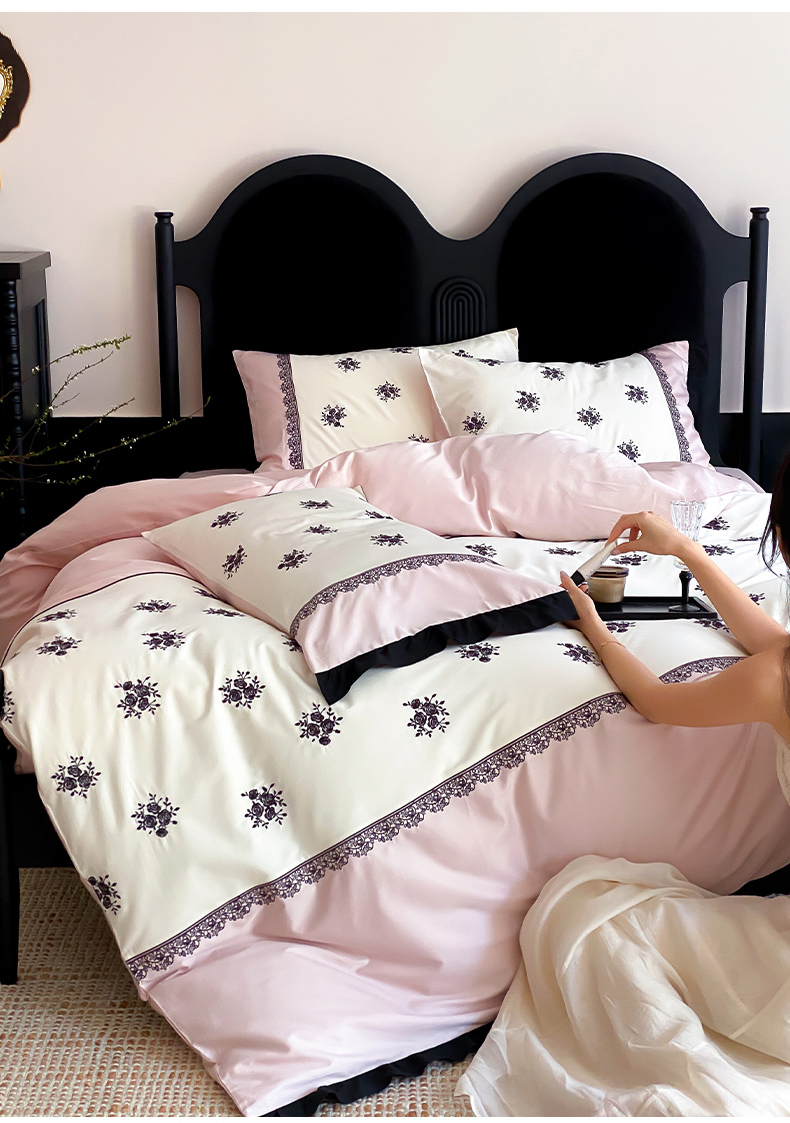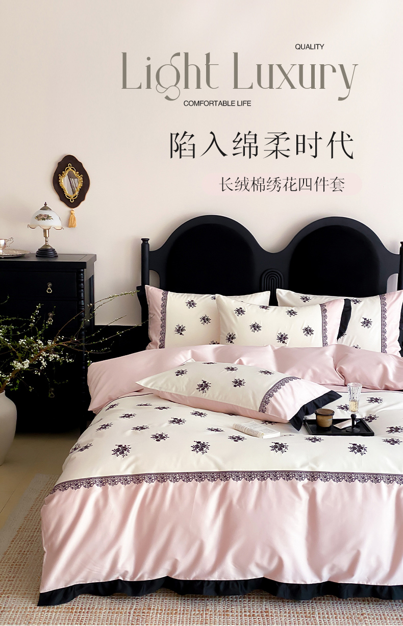 云栖家居 2025新款全棉纯棉长绒棉纯棉刺绣四件套-浅陌(控价不低于318元) 浅陌-粉