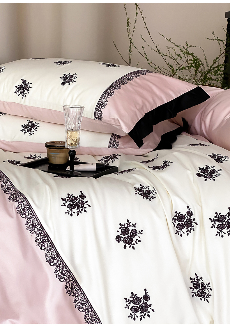 商品名称:云栖家居 2025新款全棉纯棉长绒棉纯棉刺绣四件套-浅陌(控价不低于318元) 浅陌-粉