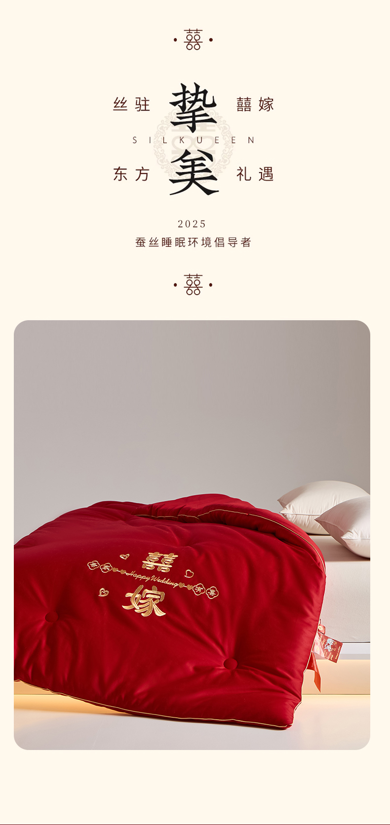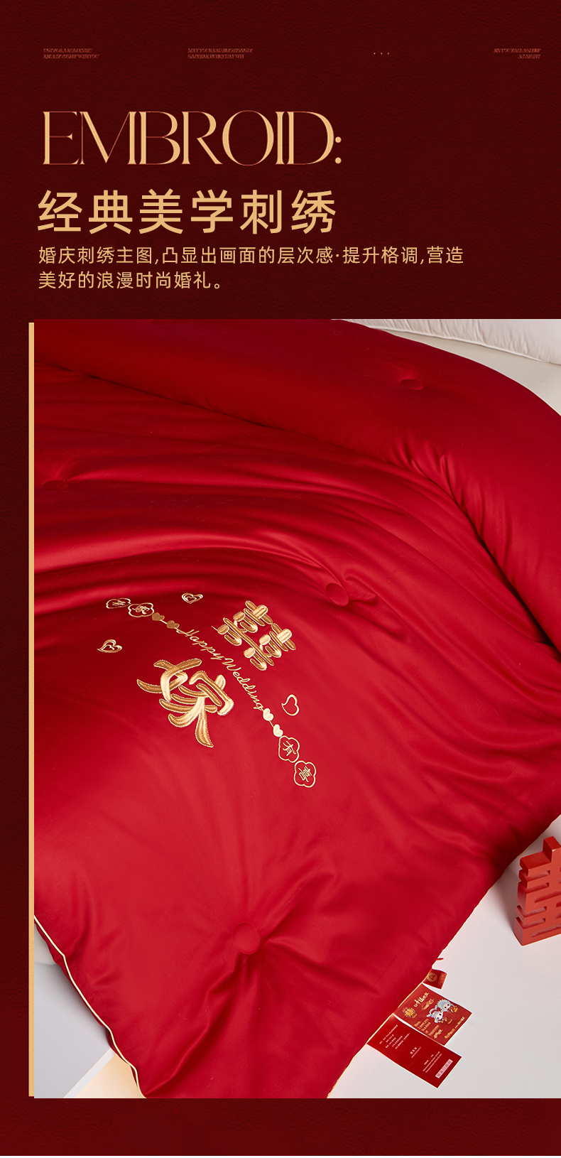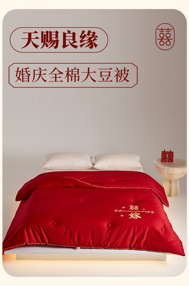 商品名称:(总)纪梵茜 2025新款全棉婚庆被芯长绒棉51%大豆纤维被子纯棉喜庆婚嫁大红冬被-喜嫁