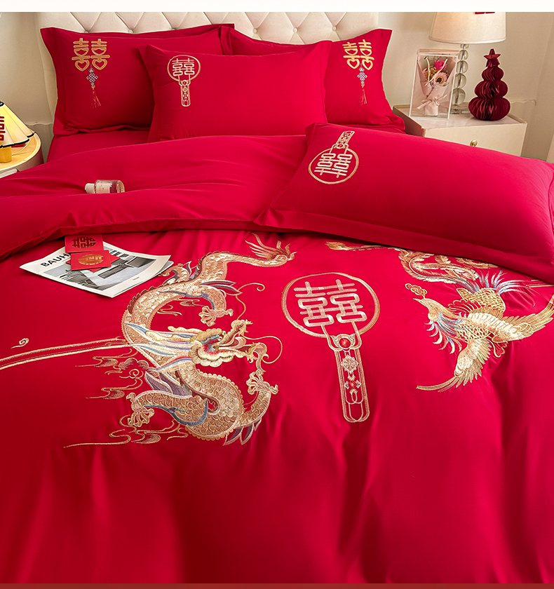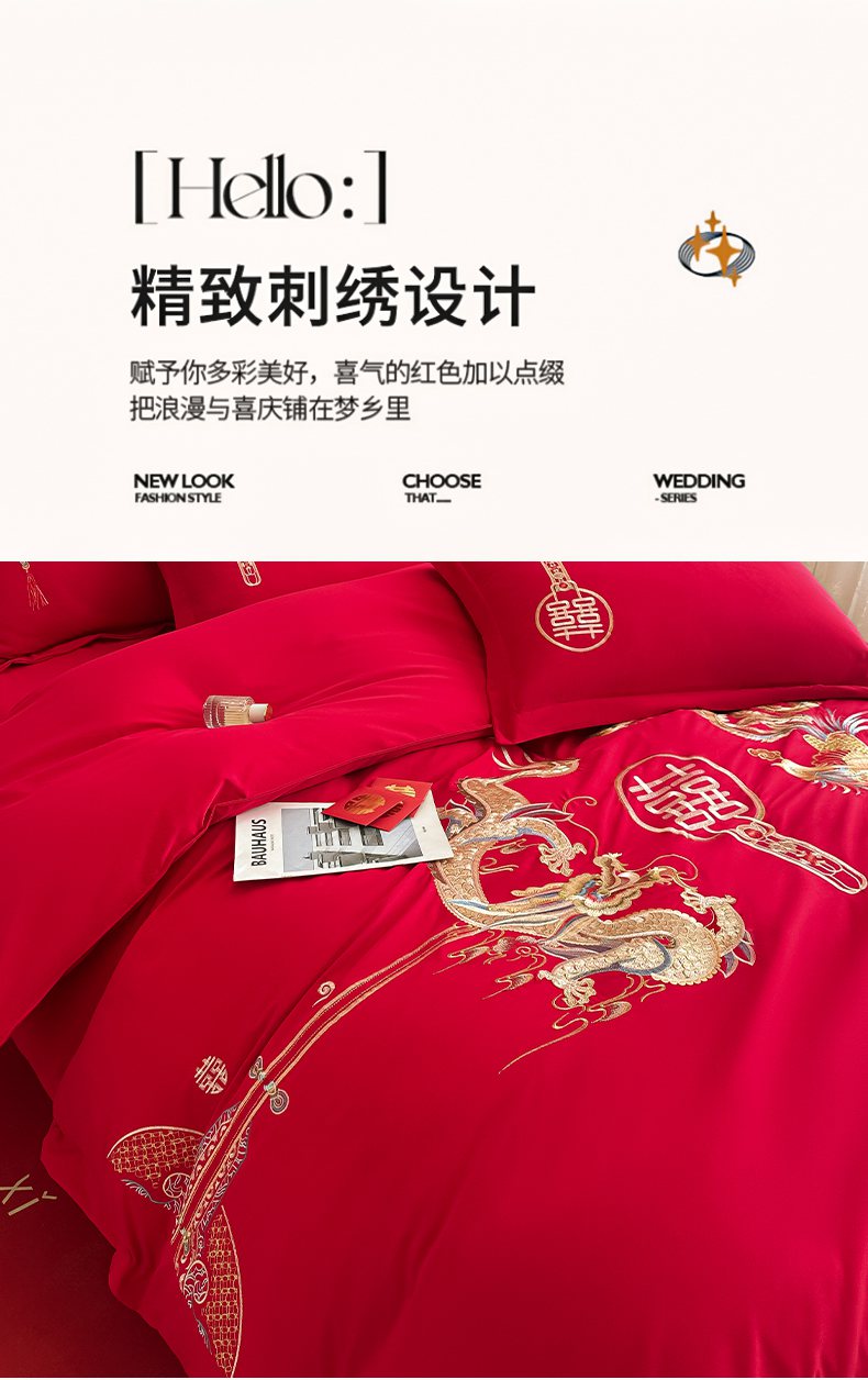 商品名称:梵克保罗 2025新款140高克重磨毛亲肤棉刺绣婚庆四件套 百子迎喜