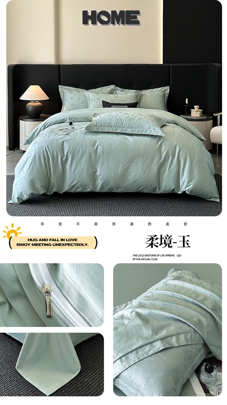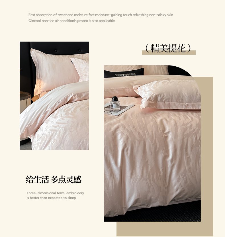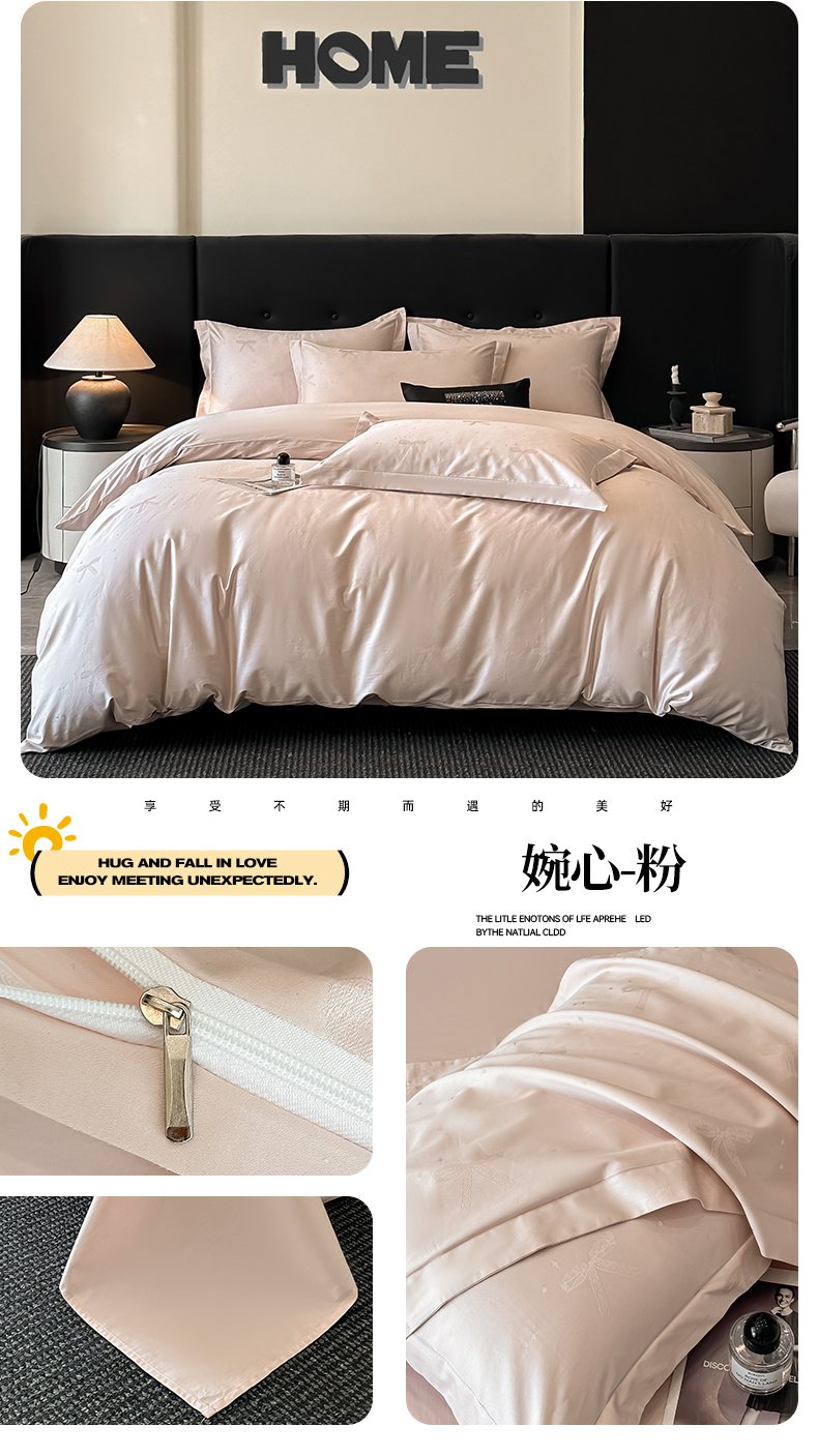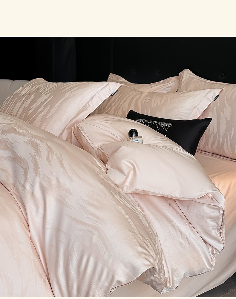 商品名称:梵克保罗 2025春夏新品50S长绒棉轻奢提花四件套 轻纱-粉