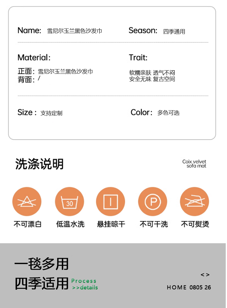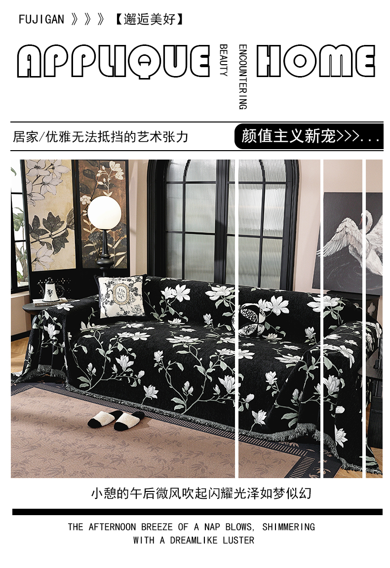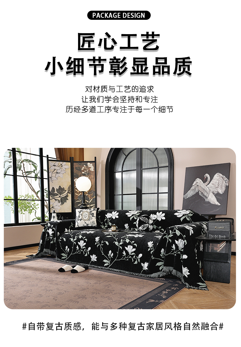 当前位置: 91家纺网 > 商品网购 > 居家布艺 > 防尘保护罩 > 其它罩类/套类 > 共鸣沙发垫 2025新款亲肤舒适雪尼尔玉兰黑色沙发巾 玉兰黑色 180x130cm沙发巾