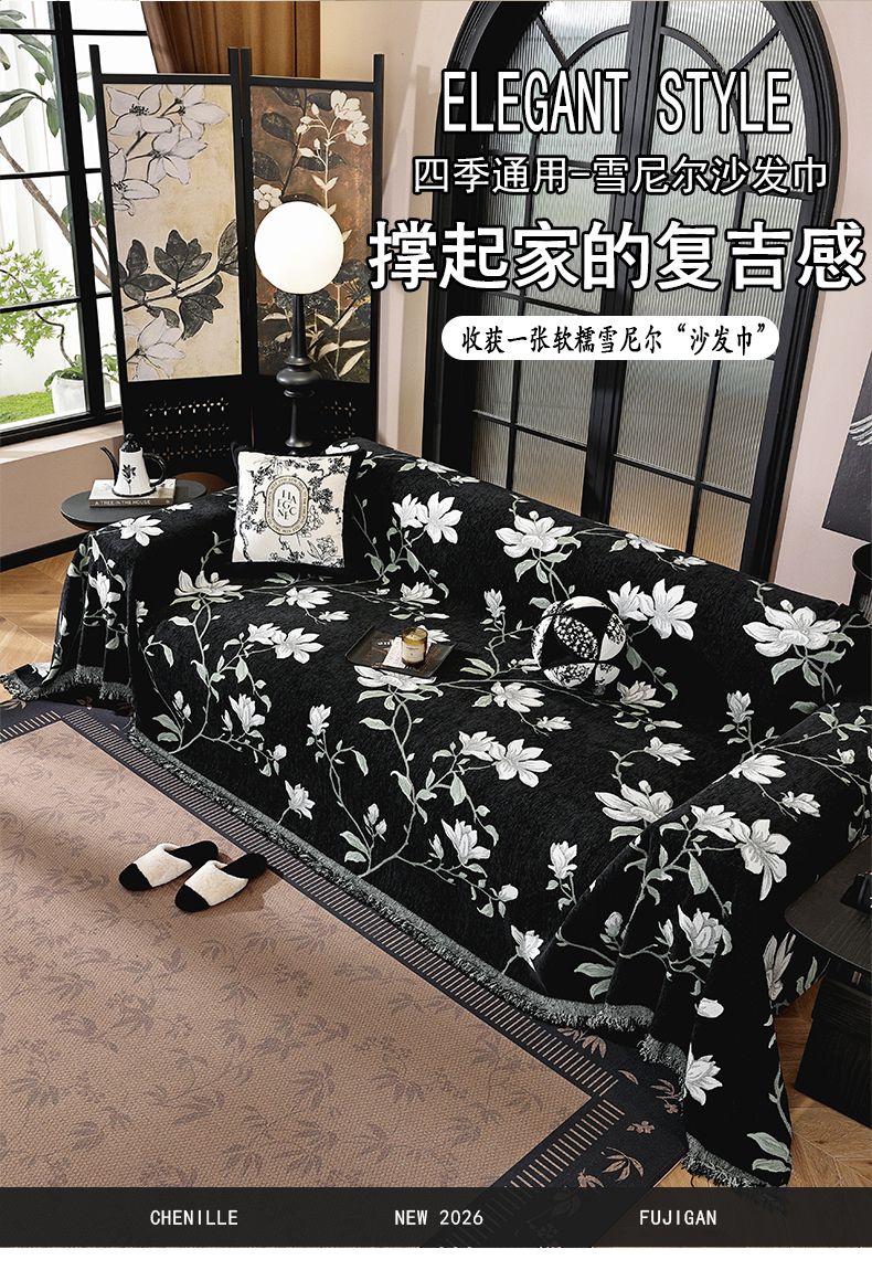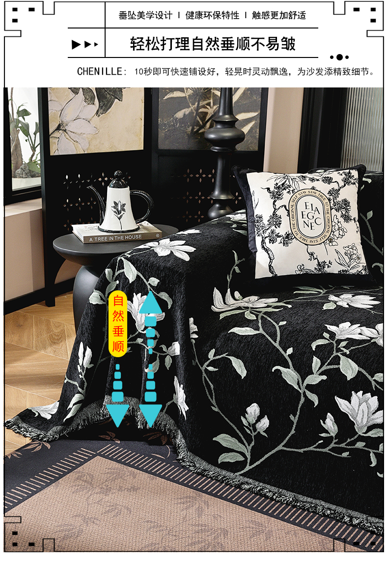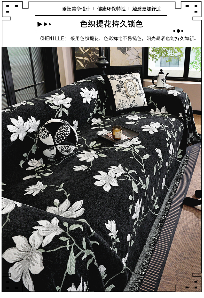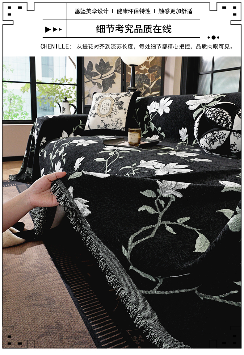 当前位置: 91家纺网 > 商品网购 > 居家布艺 > 防尘保护罩 > 其它罩类/套类 > 共鸣沙发垫 2025新款亲肤舒适雪尼尔玉兰黑色沙发巾 玉兰黑色 180x260cm沙发巾