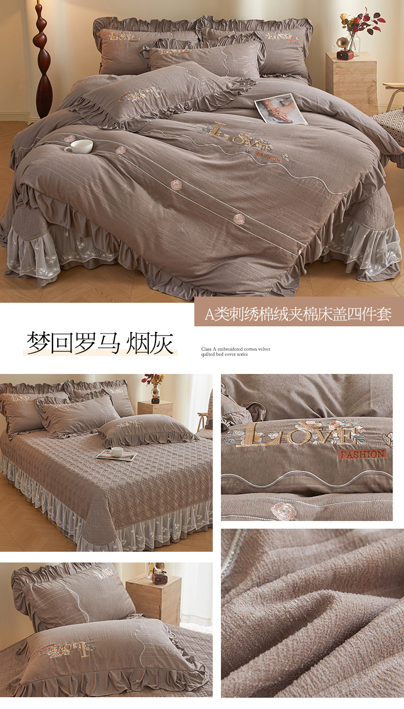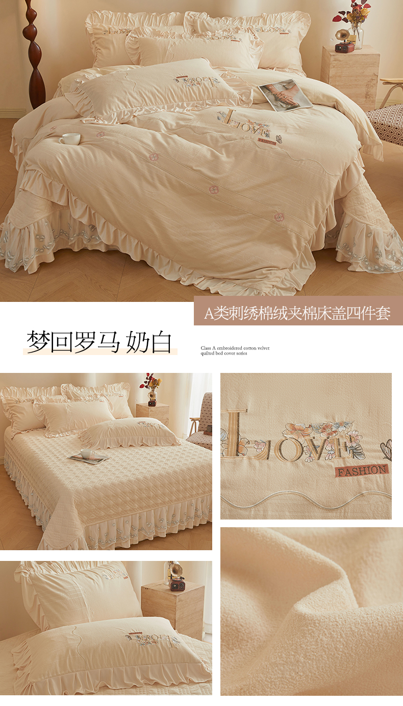 (总)宜凡家纺 2025新款兔绒提花牛奶绒夹棉床盖四件套,爱心 粉紫,爱心 少女粉,爱心 驼色,蝶舞 大红,蝶舞 米色,蝶舞 浅紫,蝶舞 玉色,简爱 苍青,简爱 豆沙紫,简爱 玉色,樱桃 苍青,樱桃 豆沙紫,樱桃 奶油白