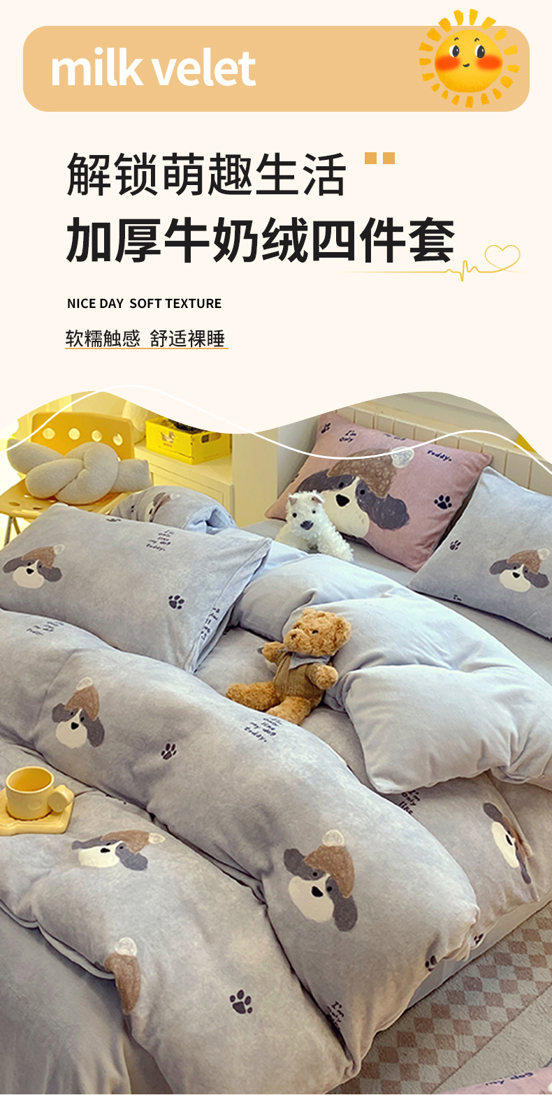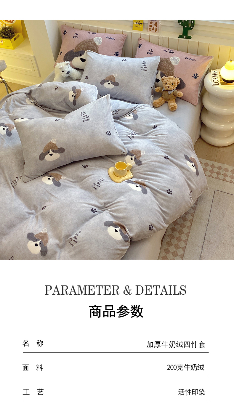 商品名称:(总)葡萄家 2025新款高克重印花牛奶绒四件套萌系卡通