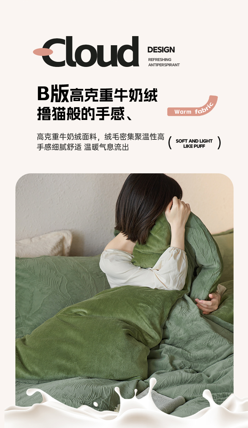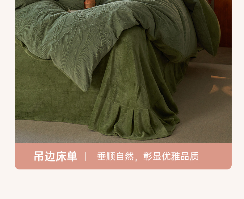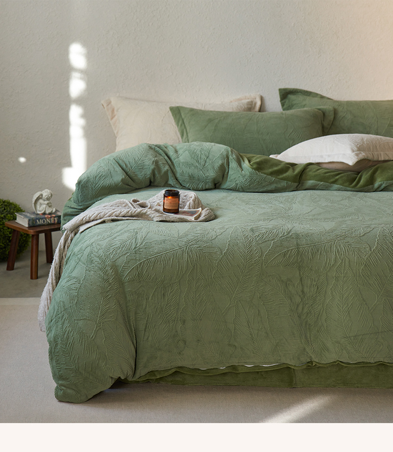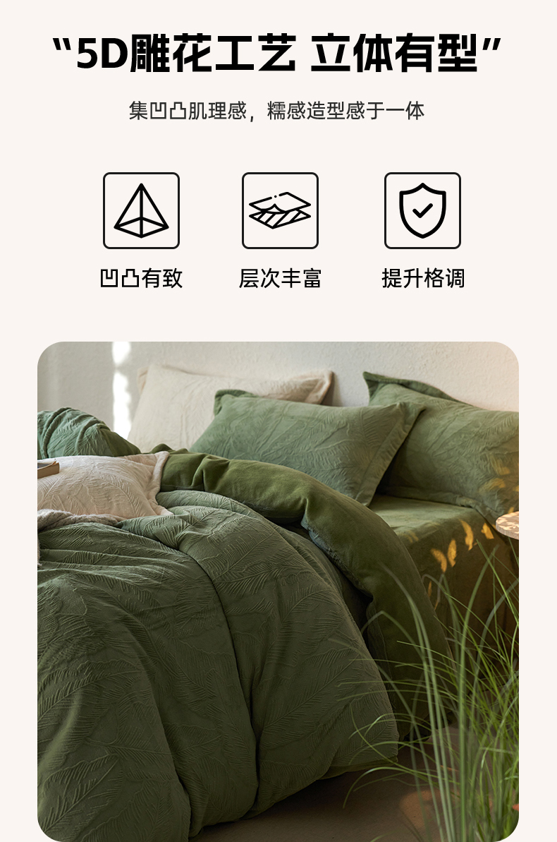 当前位置: 91家纺网 > 商品网购 > 床品套件 > 四件套 > 牛奶绒四件套 > 亿梵家居 2025秋冬新款A类全消光牛奶绒立体5D雕花绒四件套-风格一 (提供买家秀) 芭提雅-抹茶绿