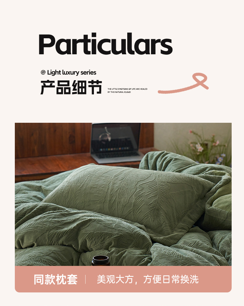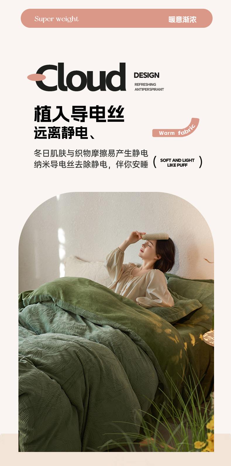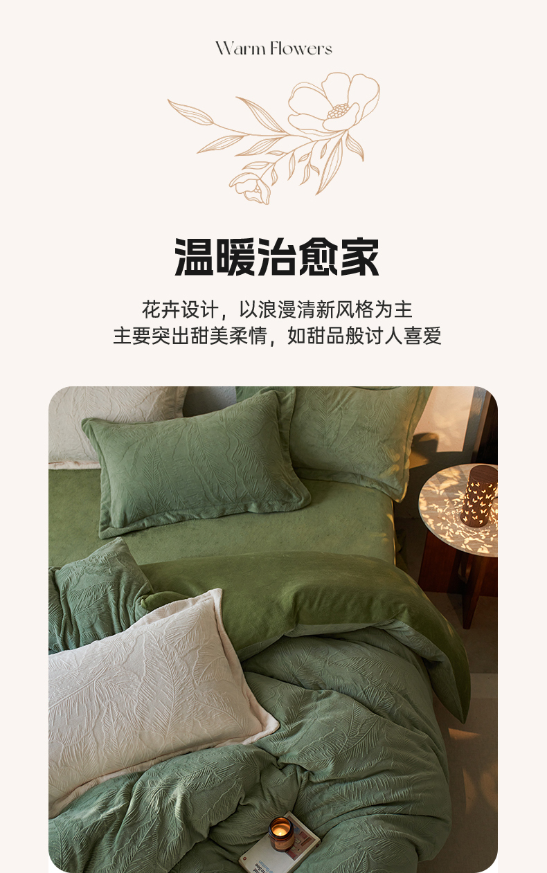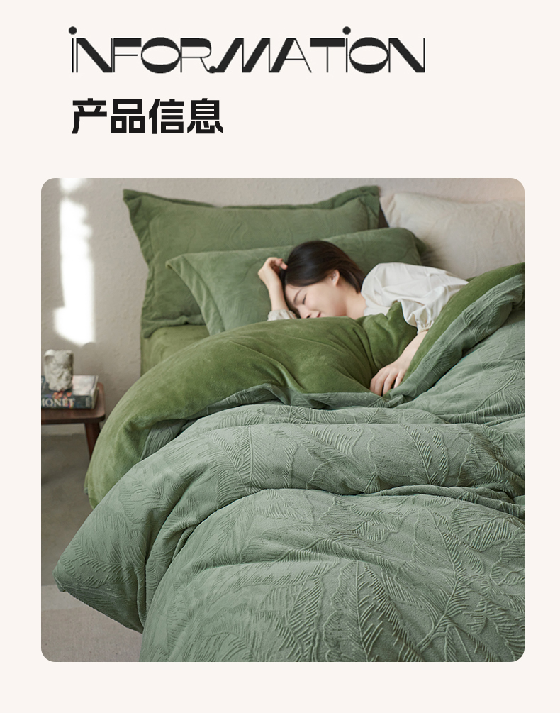 当前位置: 91家纺网 > 商品网购 > 床品套件 > 四件套 > 牛奶绒四件套 > 亿梵家居 2025秋冬新款A类全消光牛奶绒立体5D雕花绒四件套-风格一 (提供买家秀) 芭提雅-抹茶绿