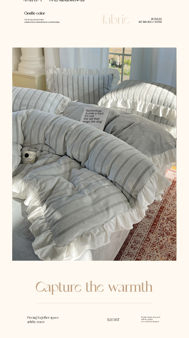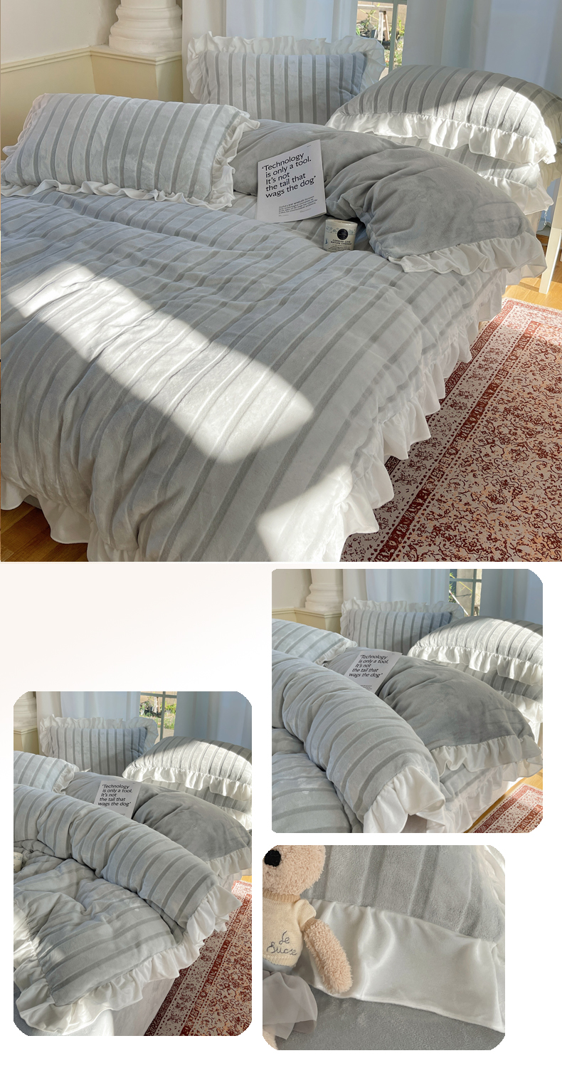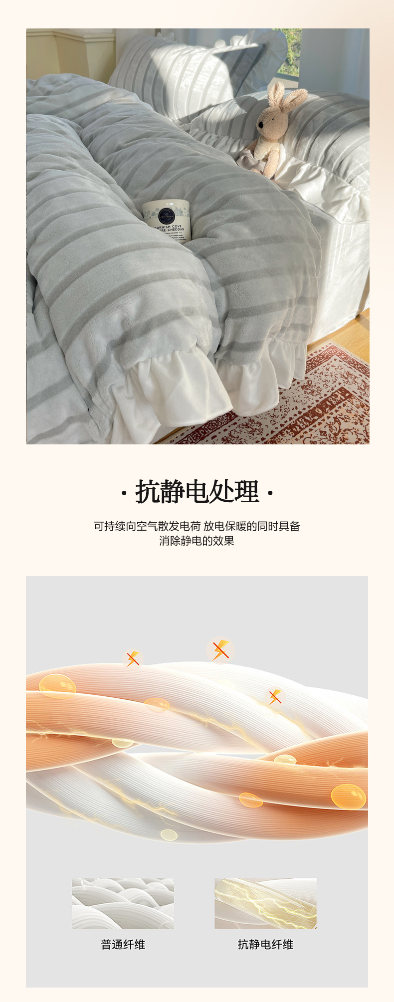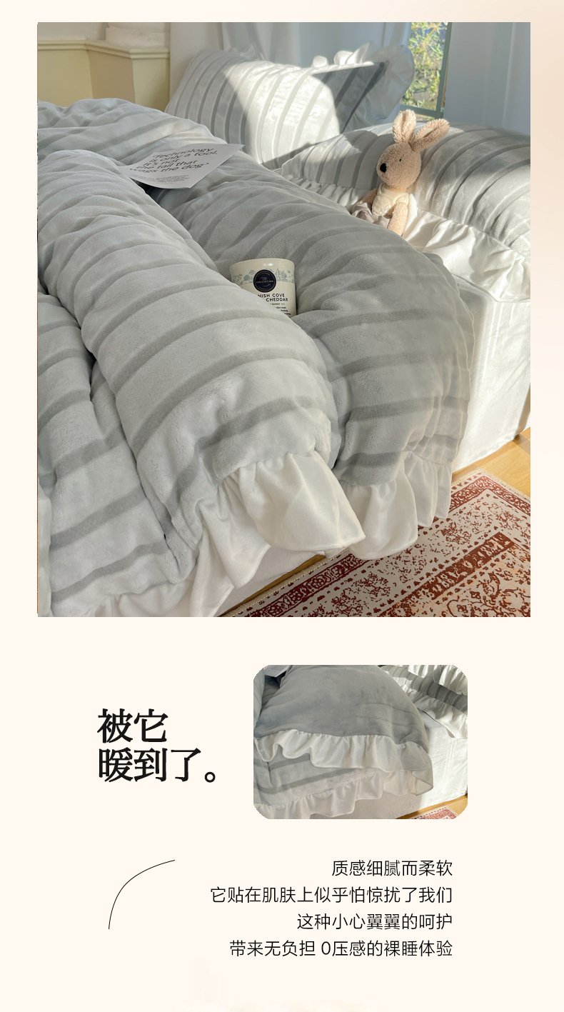 当前位置: 91家纺网 > 商品网购 > 床品套件 > 四件套 > 牛奶绒四件套 > 三朵家纺 2025新款3D立体加厚雕花绒牛奶绒花边款四件套 花边宽条-灰色