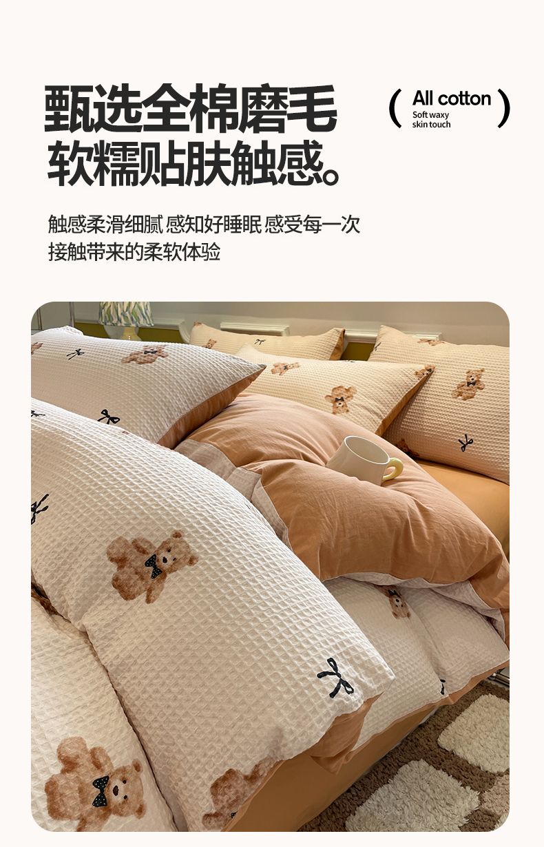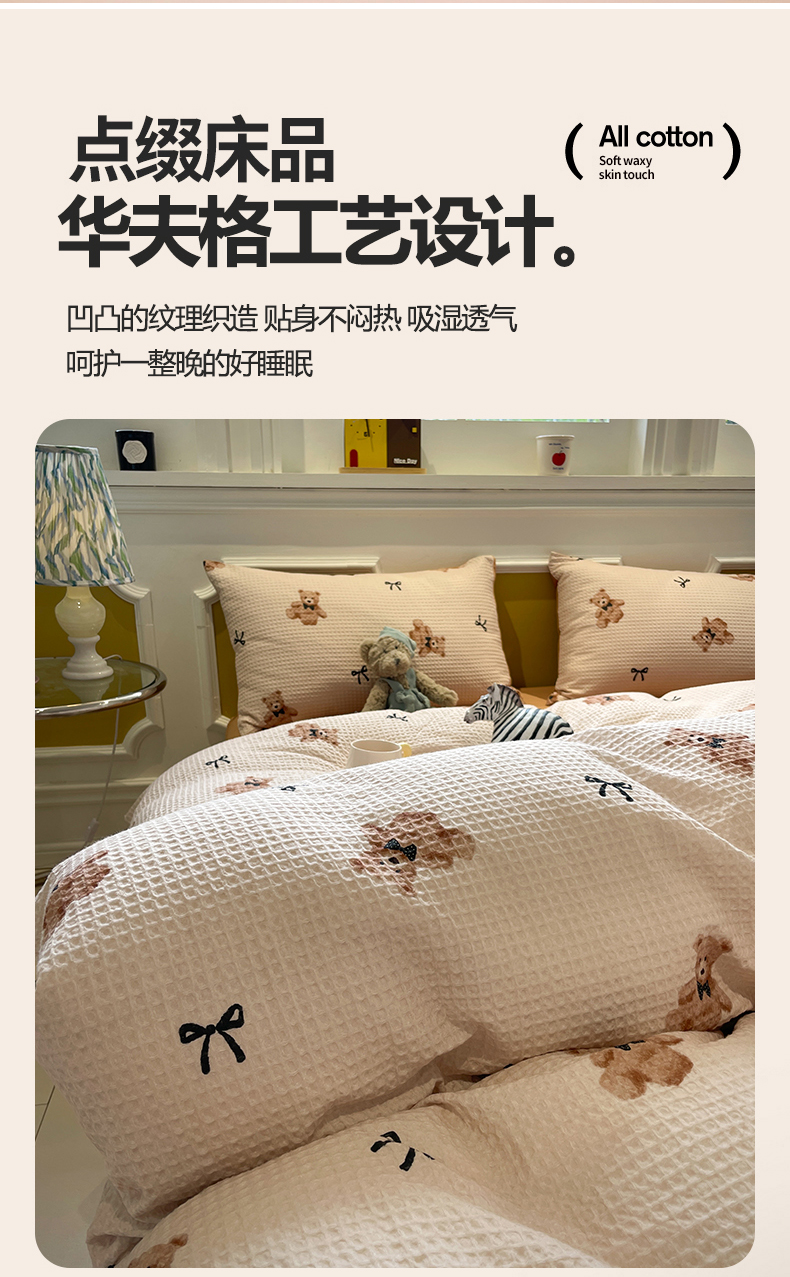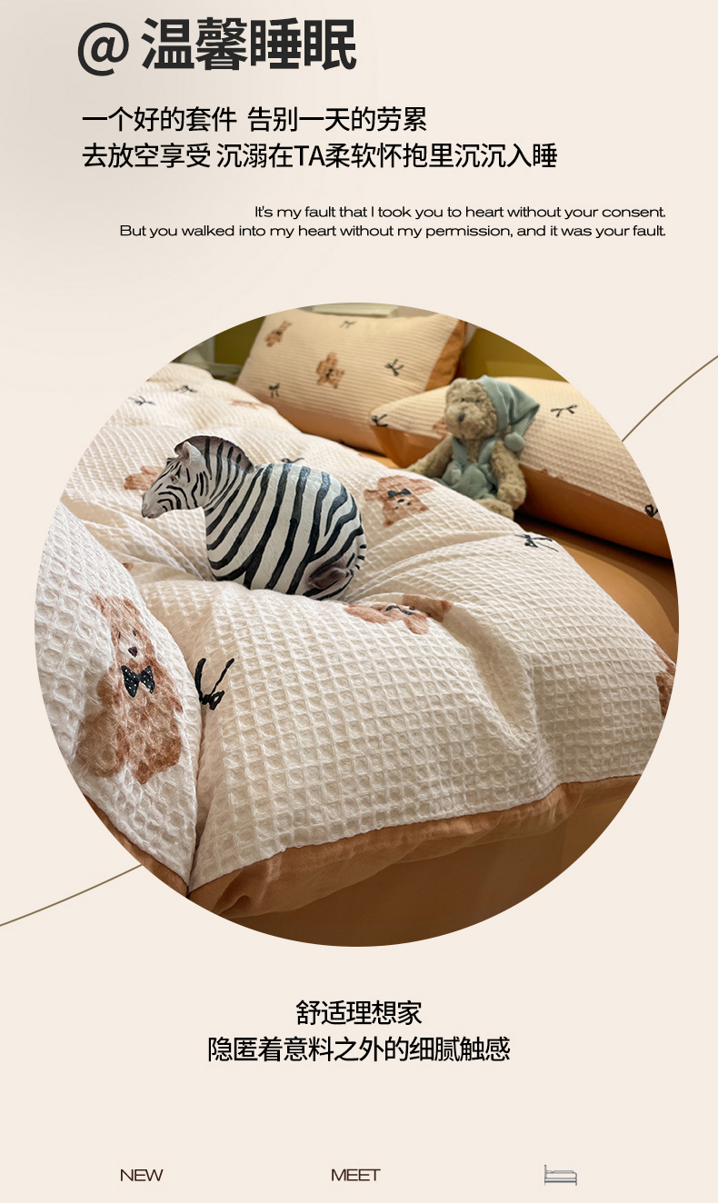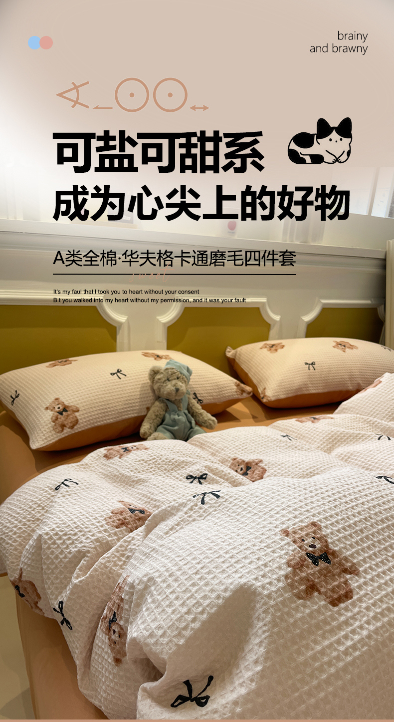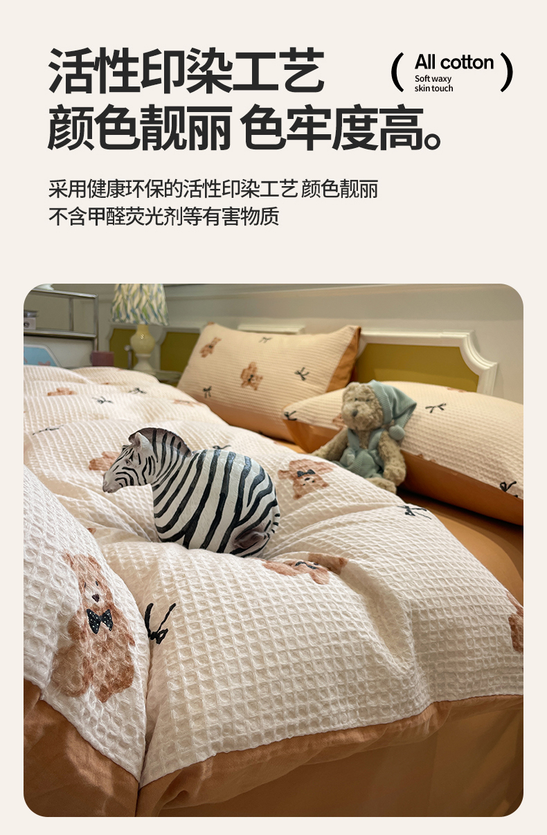当前位置: 91家纺网 > 商品网购 > 床品套件 > 四件套 > 全棉普通四件套 > 小叮当家纺仓储工厂店 2025新款提供买家秀爆款花型不断货全棉纯棉A类华夫格印花磨毛四件套 莫妮卡-卡其