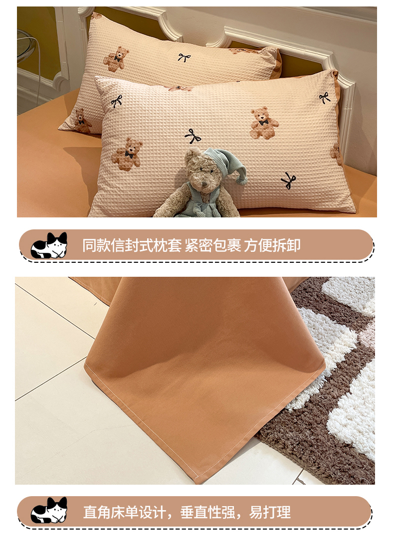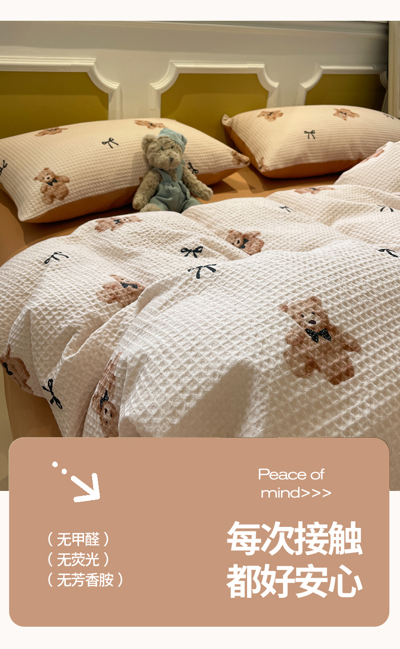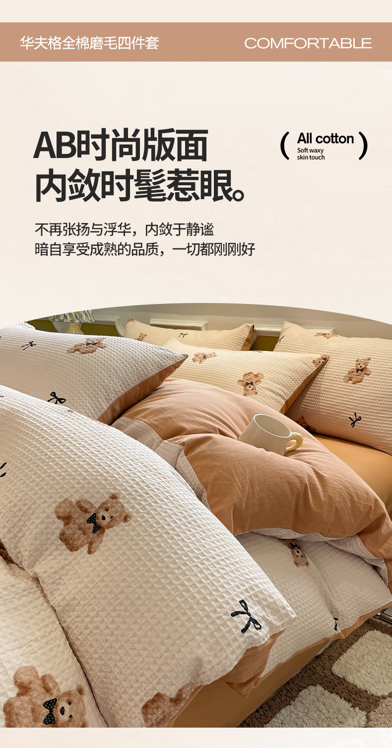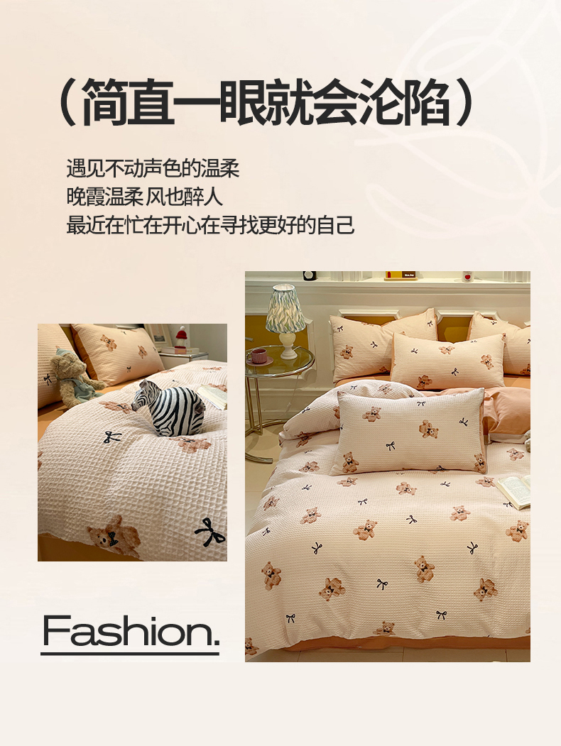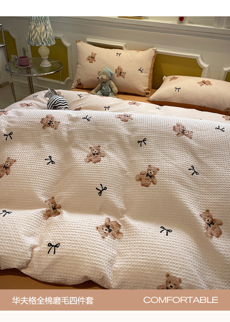 当前位置: 91家纺网 > 商品网购 > 床品套件 > 四件套 > 全棉普通四件套 > 小叮当家纺仓储工厂店 2025新款提供买家秀爆款花型不断货全棉纯棉A类华夫格印花磨毛四件套 莫妮卡-卡其