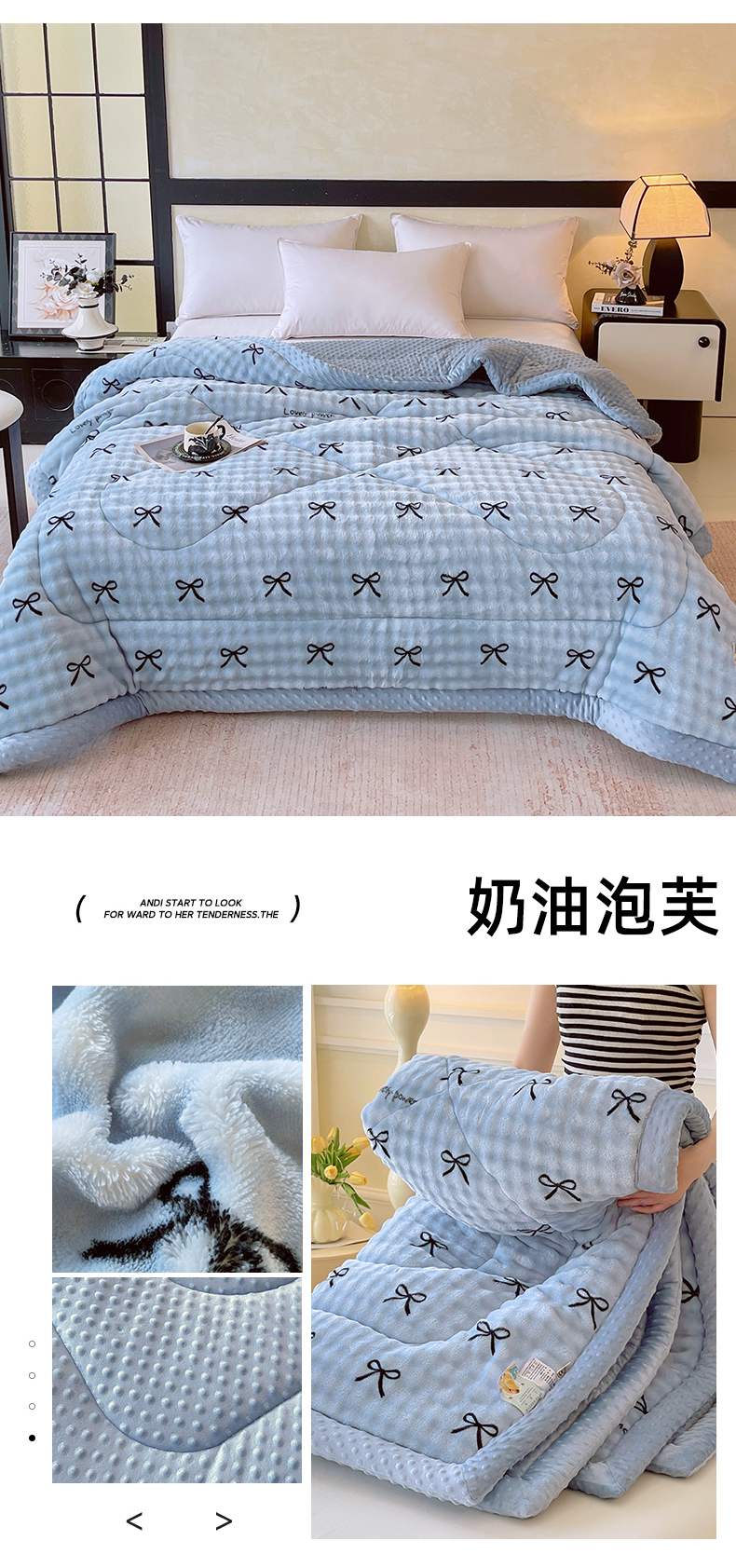 商品名称:云家 2025直播热款兔兔绒豆豆被三层夹棉加厚毛毯毯子牛奶绒冬被泡泡兔毛绒保暖被子被芯 牛牛