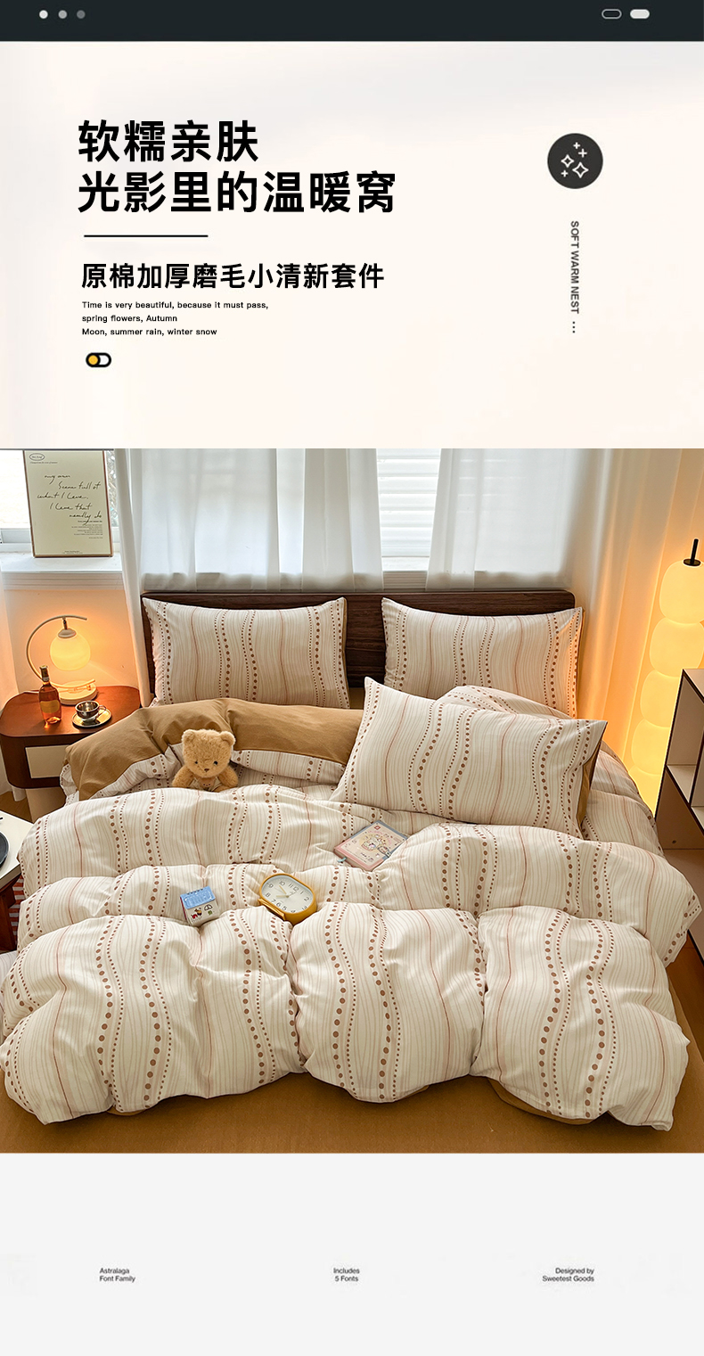 当前位置: 91家纺网 > 商品网购 > 床品套件 > 四件套 > 全棉普通四件套 > 小叮当家纺仓储工厂店 2025新款提供买家秀爆款花型不断货亲肤舒适原棉加厚磨毛四件套 漫之语-棕
