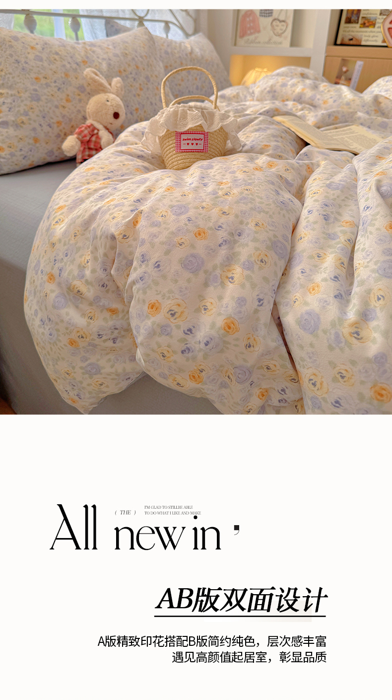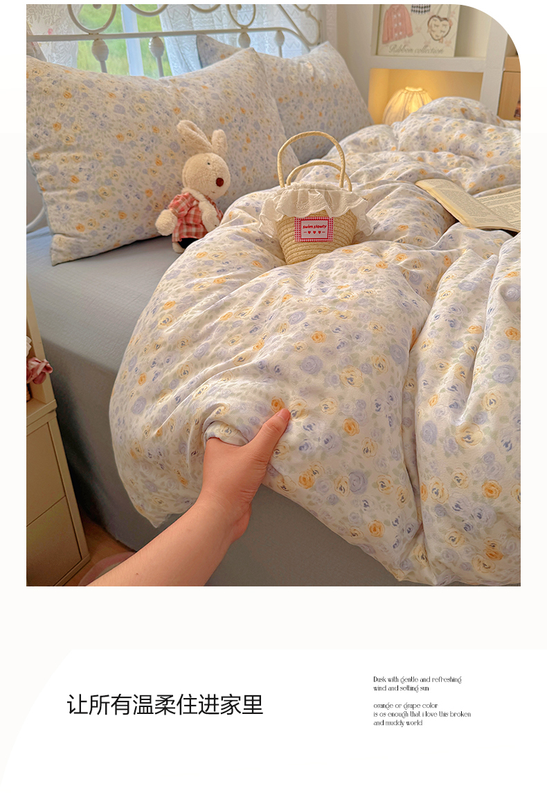 当前位置: 91家纺网 > 商品网购 > 床品套件 > 四件套 > 水洗棉四件套 > 阿曼达 2025爆款云感木m透气柔软印花可爱卡通软糯皱皱亲肤四件套 花容月貌-兰