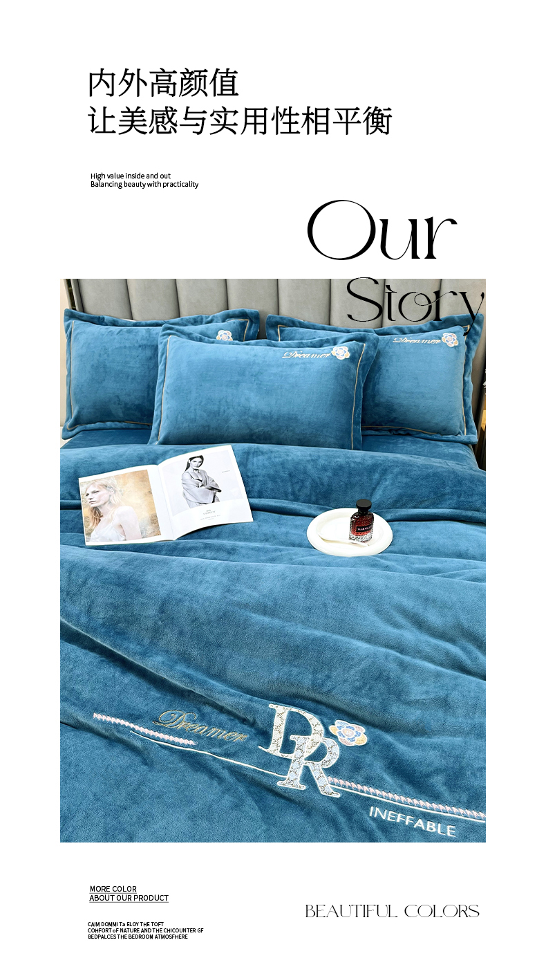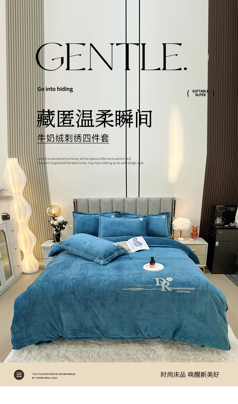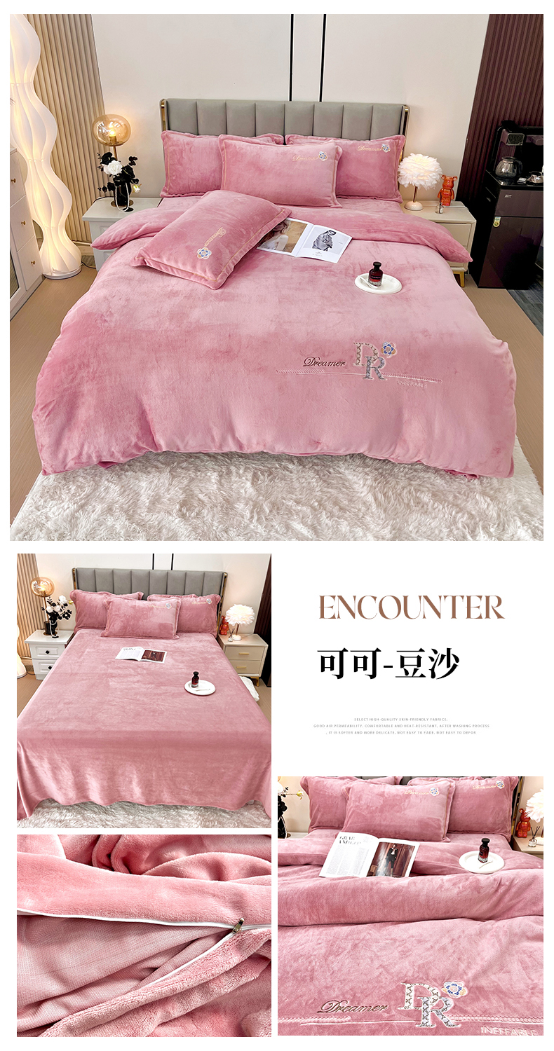 (总)逸林家纺《原希尔顿逸林》 2025新款牛奶绒绣花四件套-可可系列,可可-宾利蓝,可可-豆沙,可可-繁星蓝,可可-粉玉,可可-香芋紫,可可-雅士灰