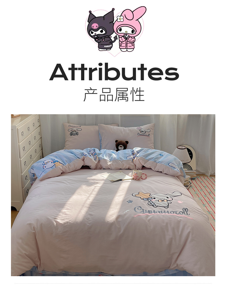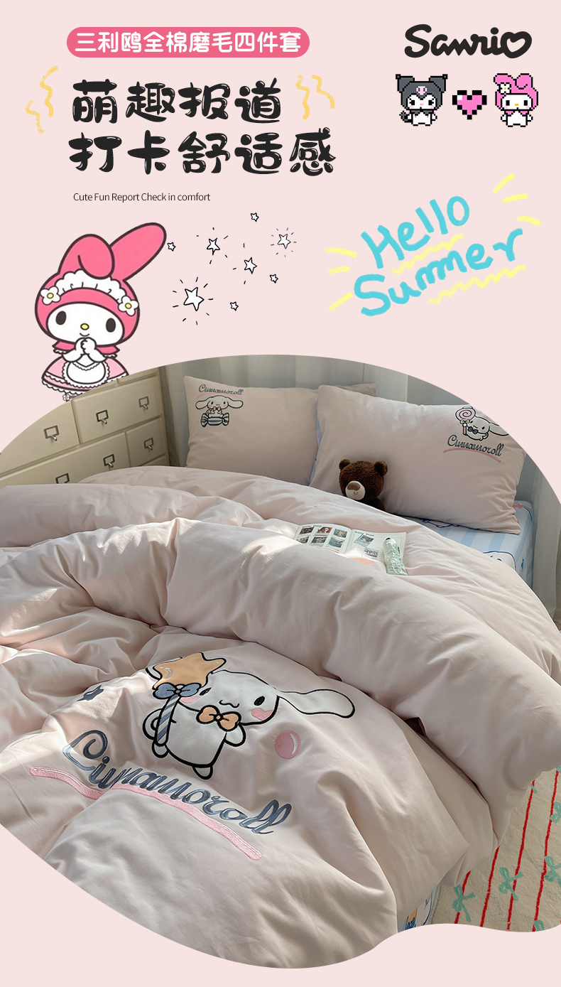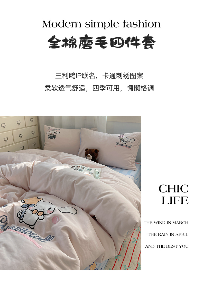 当前位置: 91家纺网 > 商品网购 > 床品套件 > 四件套 > 全棉普通四件套 > 小叮当家纺仓储工厂店 2025新款提供买家秀爆款花型不断货三丽鸥绣花全棉纯棉磨毛卡通四件套 星愿玉桂狗-粉